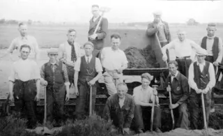 Drie mannen graven een greppel in Kamp Ybenheer.