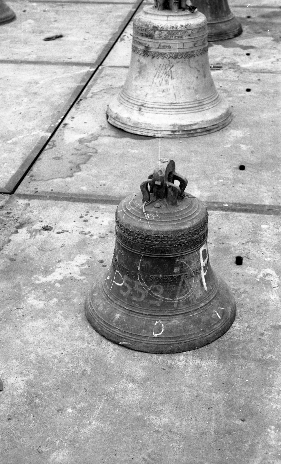 Gt: P. de Clerck. Gj: 1628. Dm: 50 cm. Gw: 85 kg. Rn: 6-A-553.P. Ug: 20-1-1943. Vv: Spijk. Opschrift: PEETER DE KLERCK HEEFT MY GHEGOTEN INT IAER 1628. Op de mantel: S NICOLAE ET LAMBERTE ORATE / PRO NOBIS ET LIBERA NOS/ AB OMNI MALO