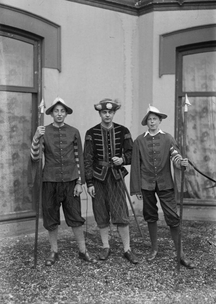 Op het eind van de oorlog begon de jongelingsvereniging met het uitvoeren van een toneelstuk. Het toneelstuk heette "Verdreven". Op de foto ziet u de drie hoofdrolspelers als musketier afgebeeld. Deze drie zijn v.l.n.r.: Dik Klein Horsman, Gerhard Wolters, Gerrit Jan Slagman