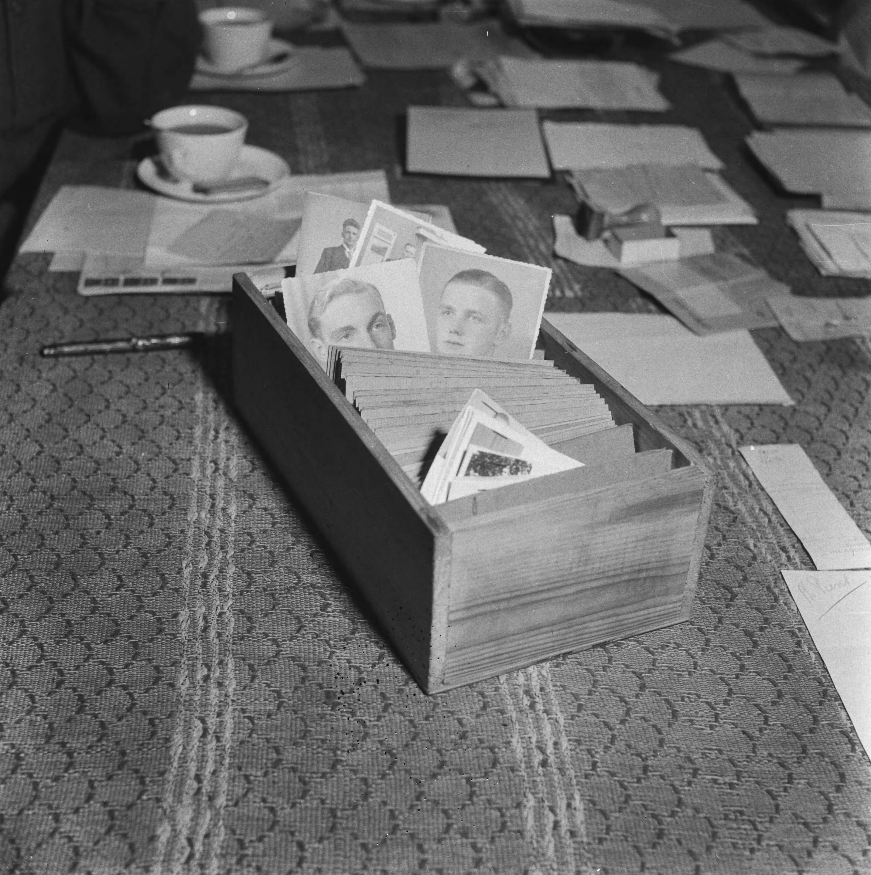 Administratie van de afgevoerden en vermisten door de heer Punt. Hij is de eigenaar van een café, en is nu de leider van de Rode Kruis actie in Putten. Hij heeft alle namen en foto's van de mannen die stierven