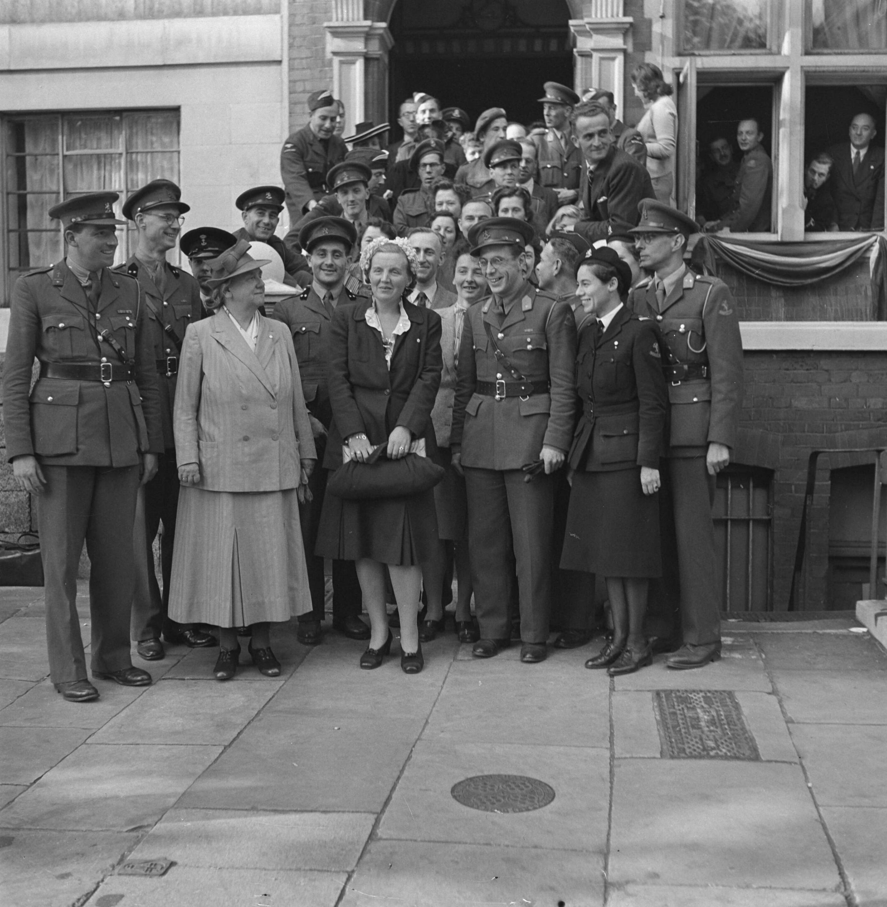 Bezoek van Koningin Wilhelmina en prinses Juliana aan "Oranjehaven" - club voor Engelandvaarders