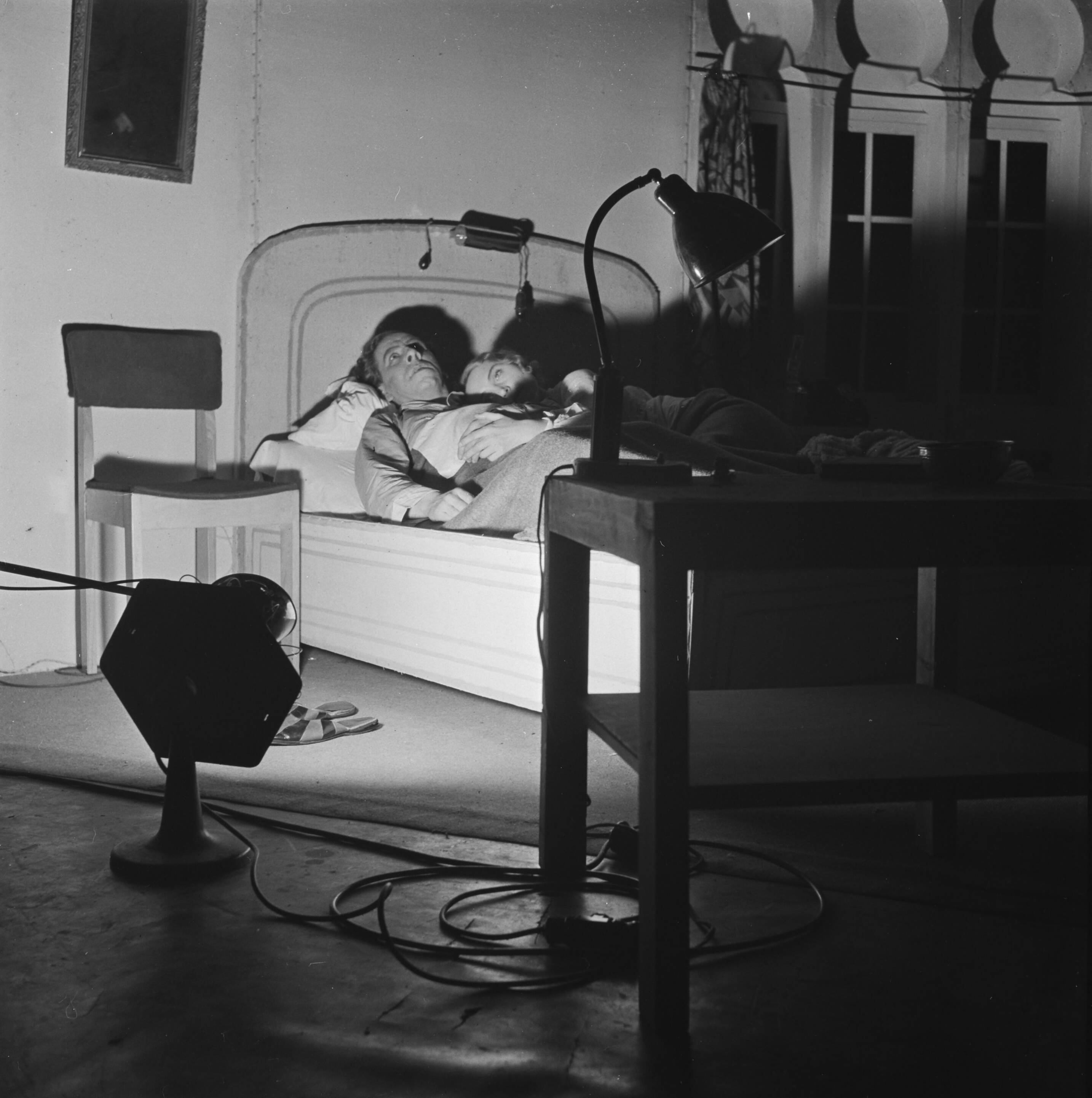 Scene uit "De vijfde colonne" (Ernest Hemingway) door Toneelgroep Comedia. Joan Remmelts en Mimi Boesnach