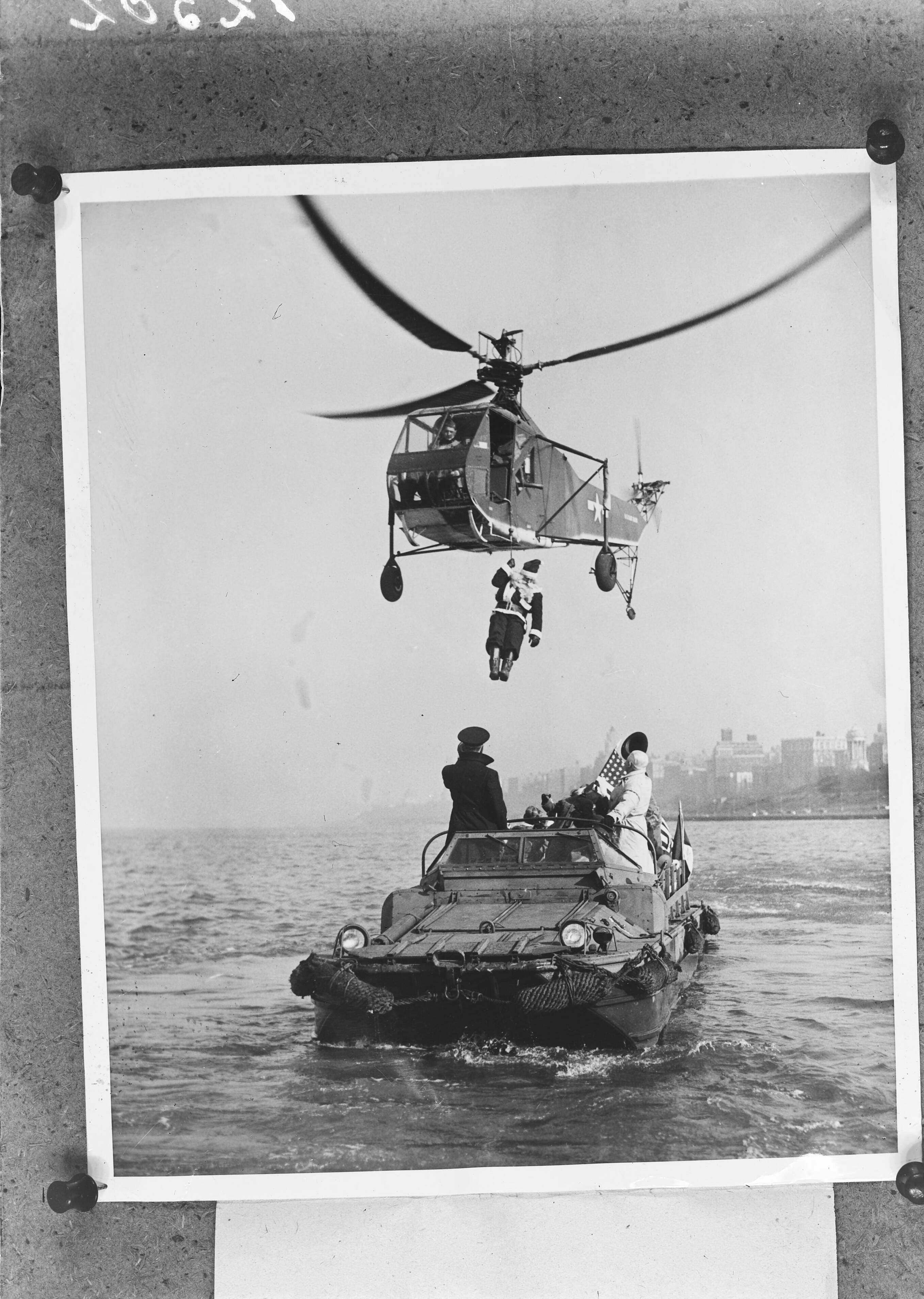 "Amphibious truck" Kerstman wordt per helikopter in een z.g. DUCKW met een kabel neergelaten