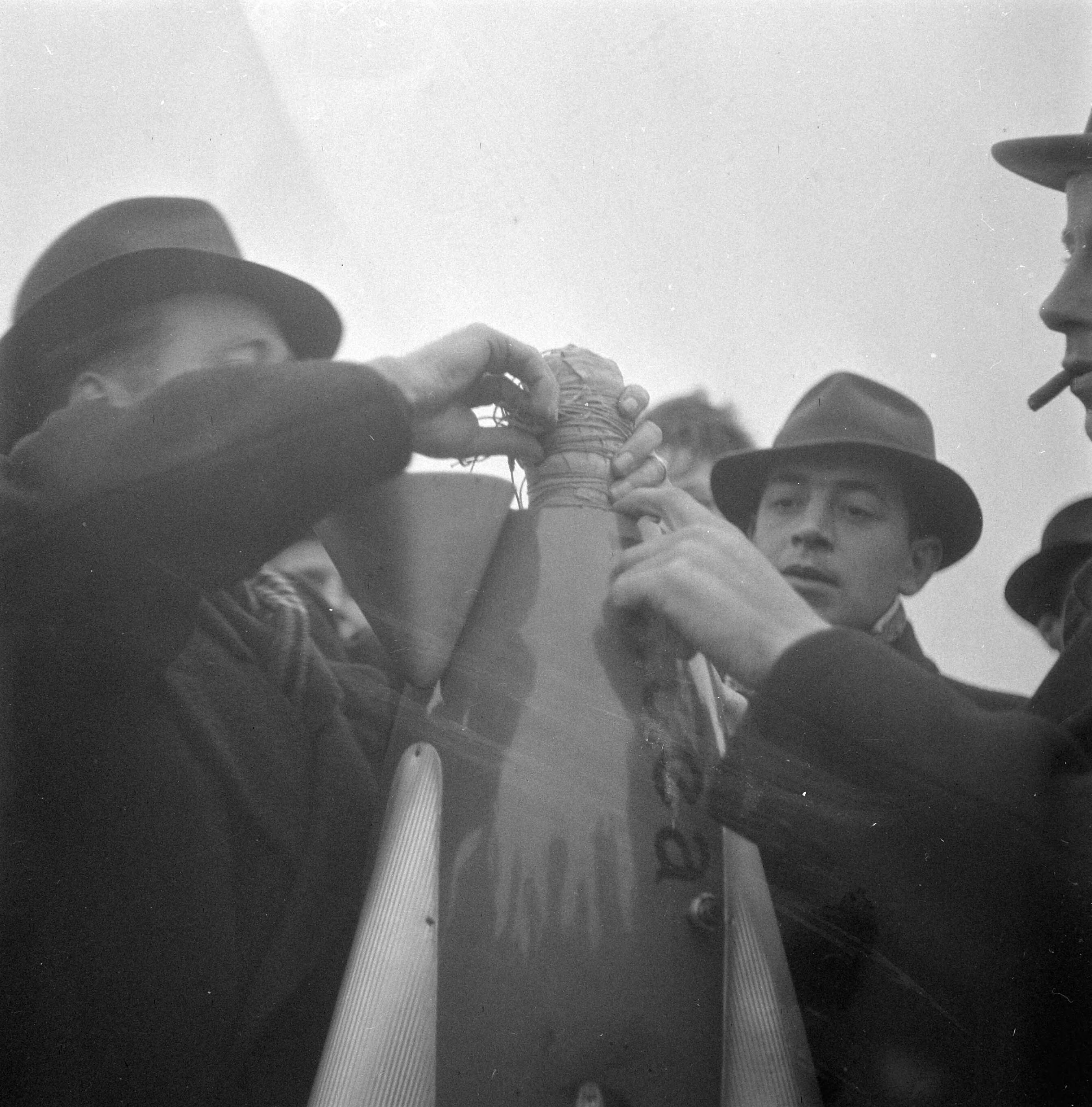 Demonstratie lancering postraket op de Larense heide c.q. Crailose heide.