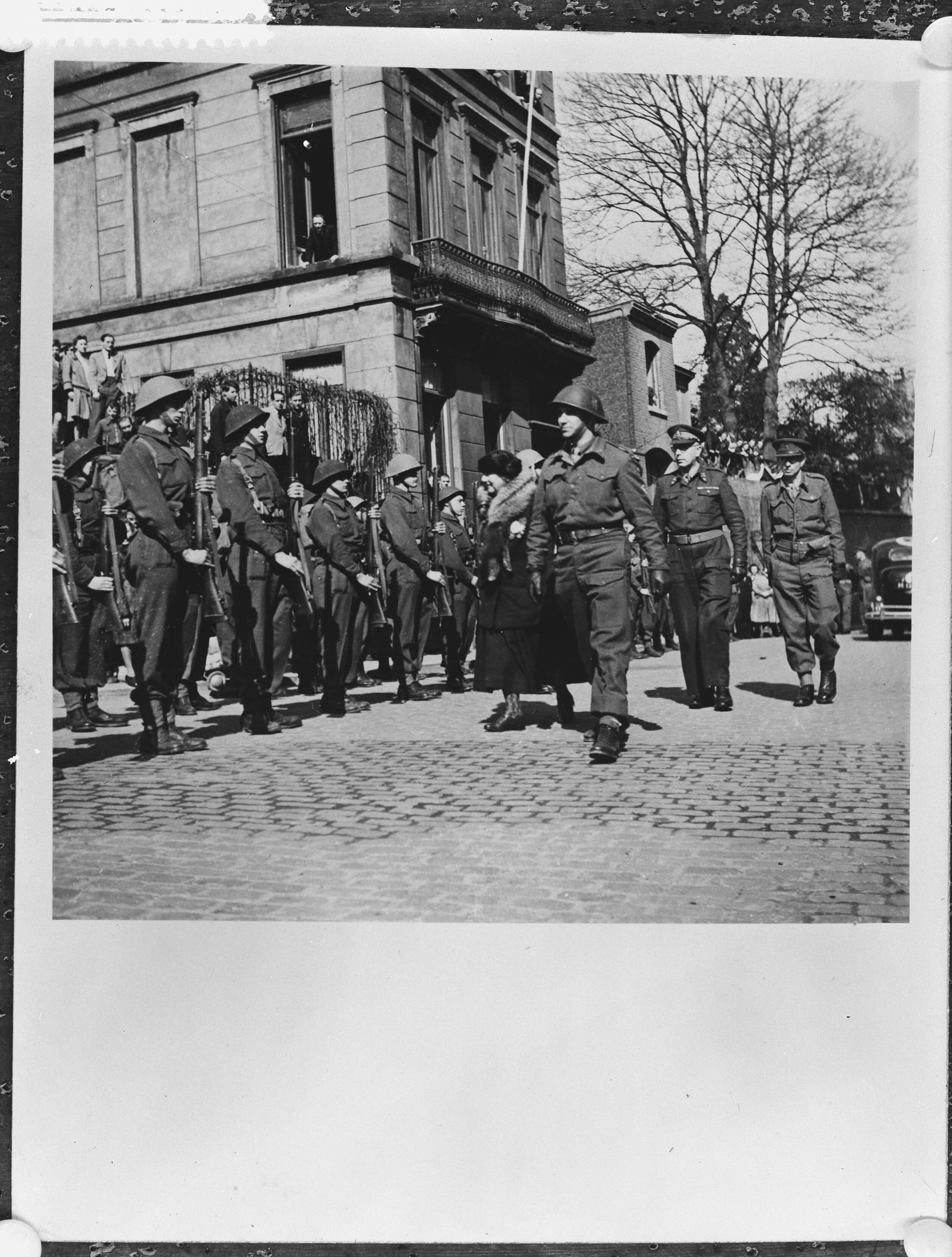 Koningin Wilhelmina inspecteert soldaten tijdens haar bezoek aan Tilburg