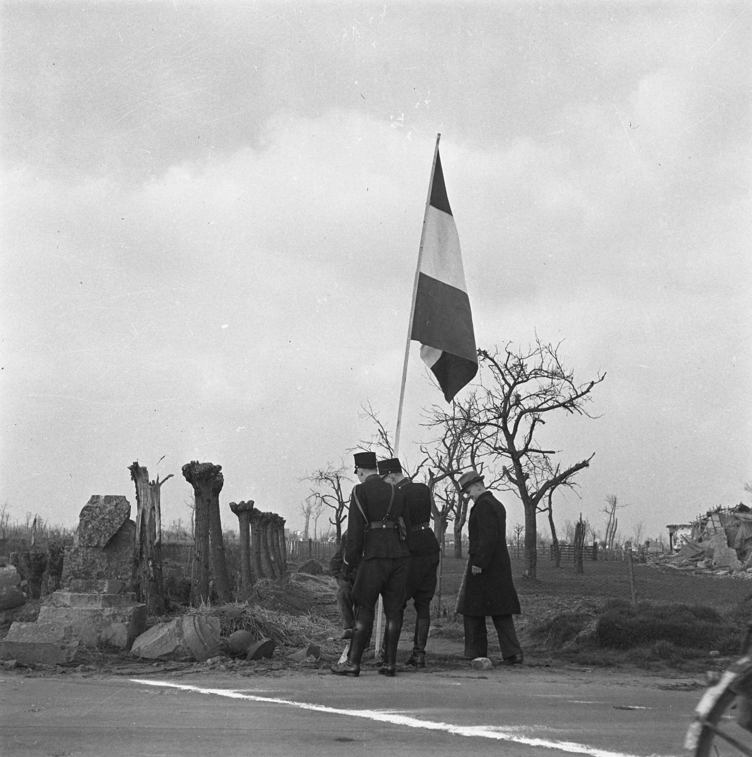 Plaatsen van de Nederlandse vlag bij de grens bij Eede, op de voorgrond de Meelstreep