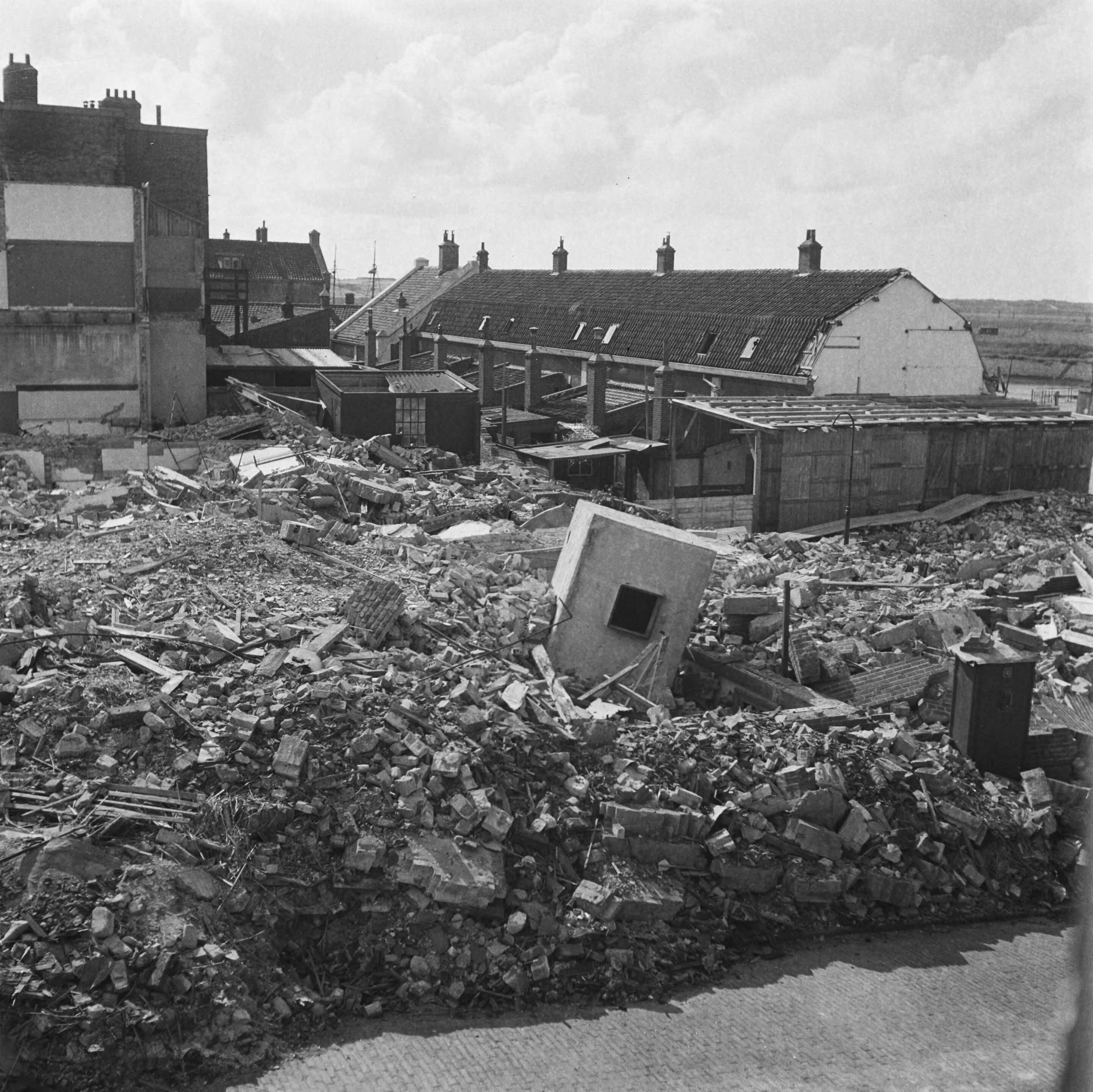 Puinhopen en licht beschadigde woningen