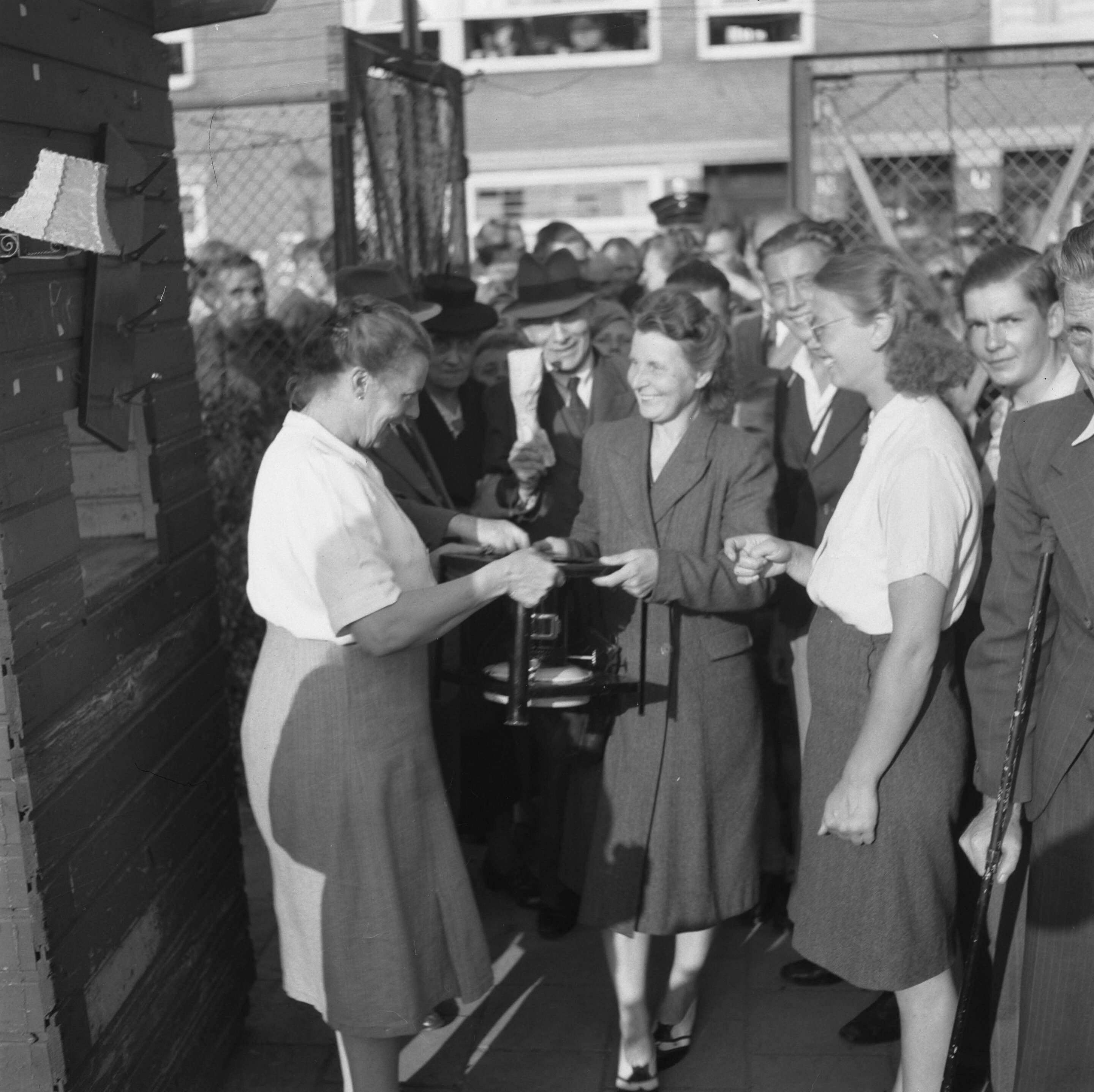 Lepels en vorkenwedstrijd op het VVA-terrein. Een voetbal wedstrijd van twee buurtverenigingen waarbij de entreeprijs huisraad was, gegeven ten behoeven van Arnhem.