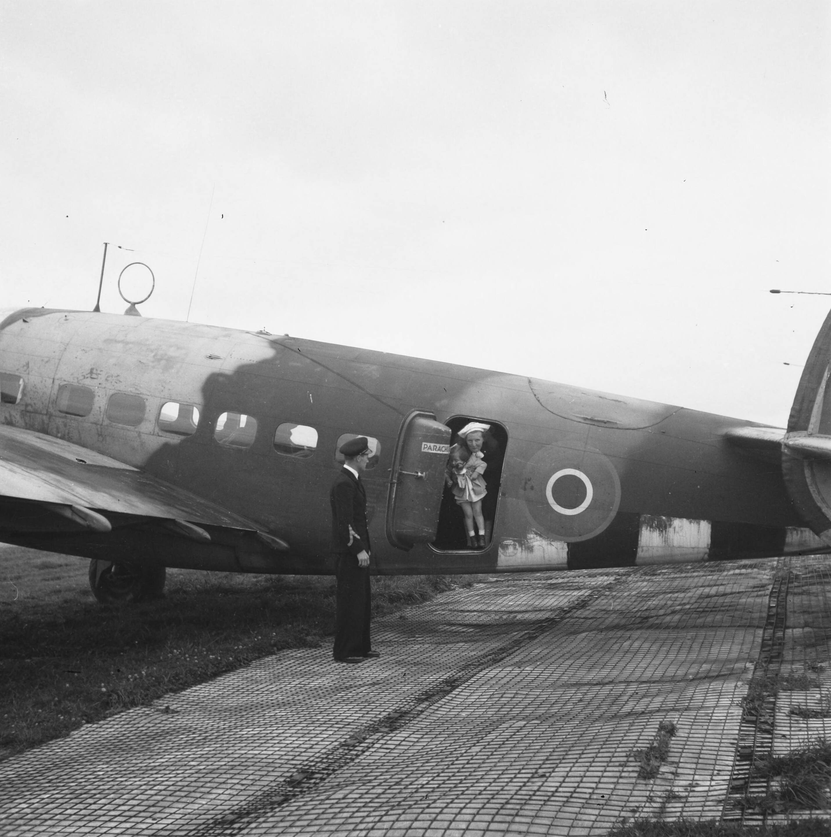 Prinses Juliana met prinses Margriet in de deuropening van de Dakota