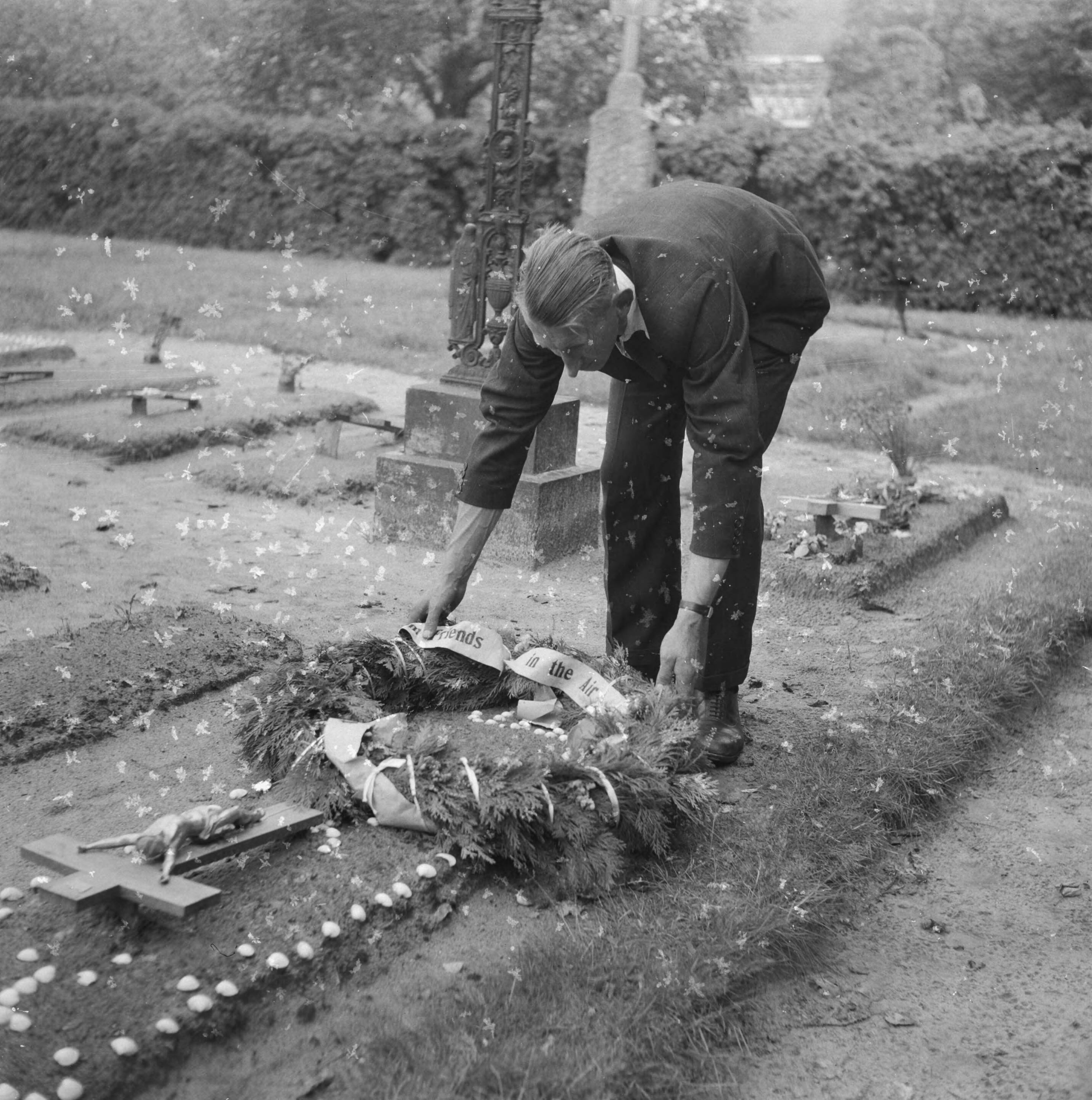 Bert Poels legt krans "From the friends of the airforce to the heroes" op het graf van zijn vader, die hem bemoedigde en als eerst...