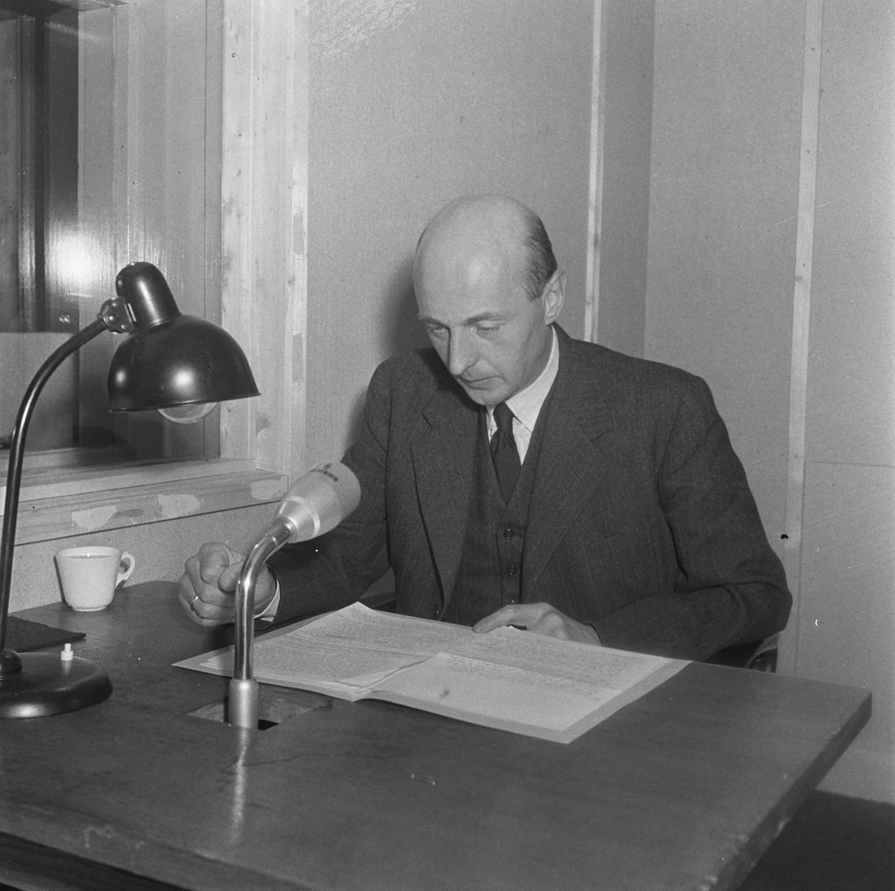 Minister van Landbouw Sicco Mansholt voor de microfoon