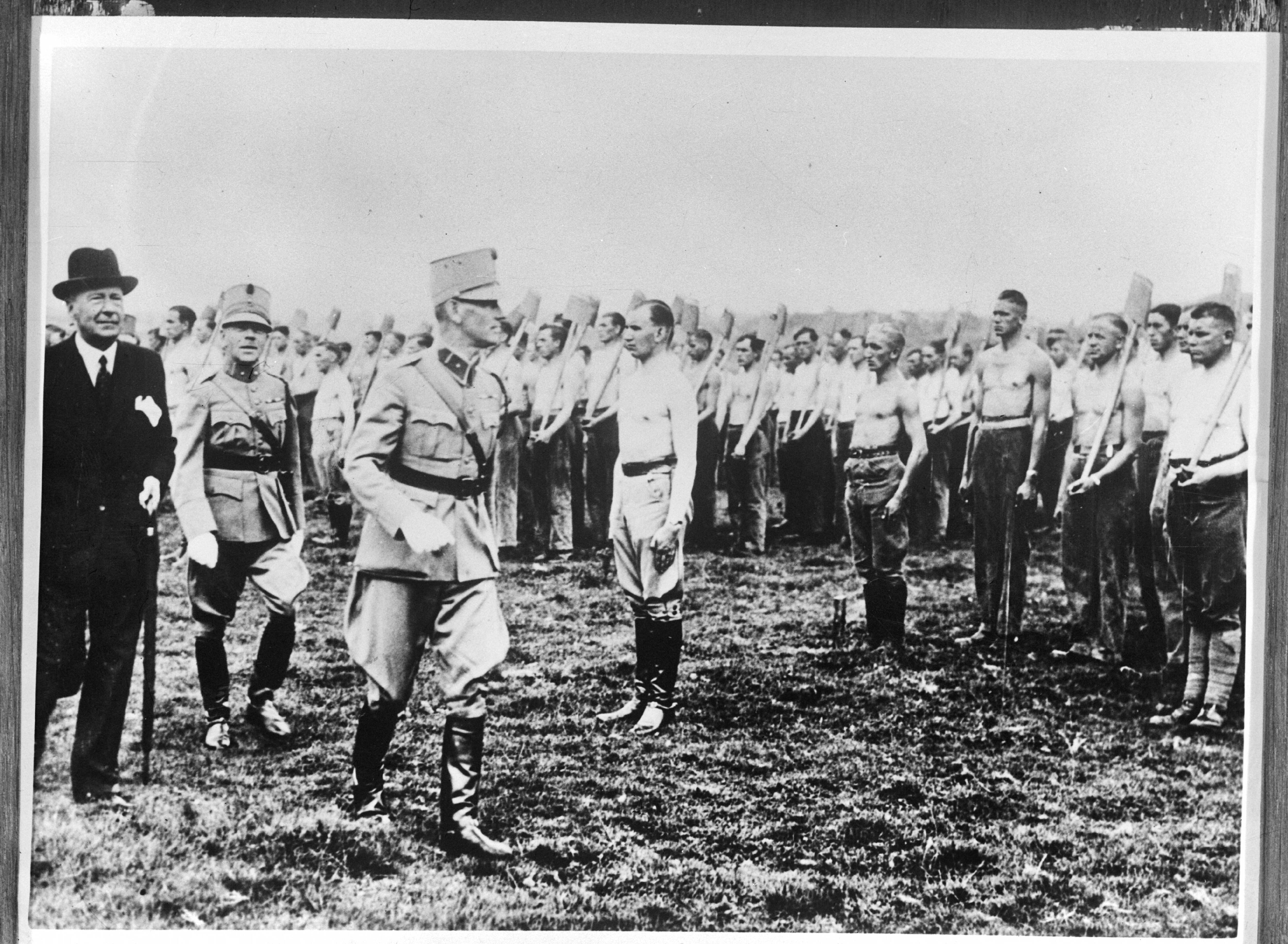 Inspectie Nederlandse Opbouwdienst door majoor J.N. Breunese