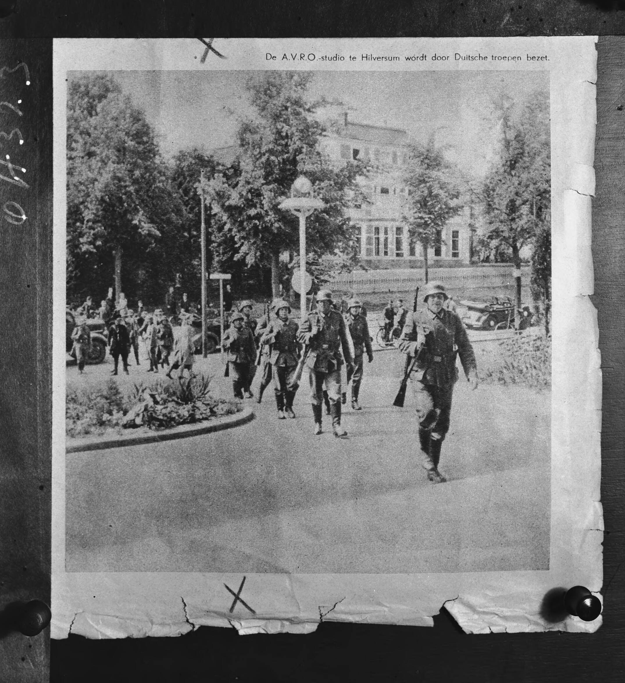 duitse troepen trekken radiostad hilversum binnen om de avro-studio te bezetten