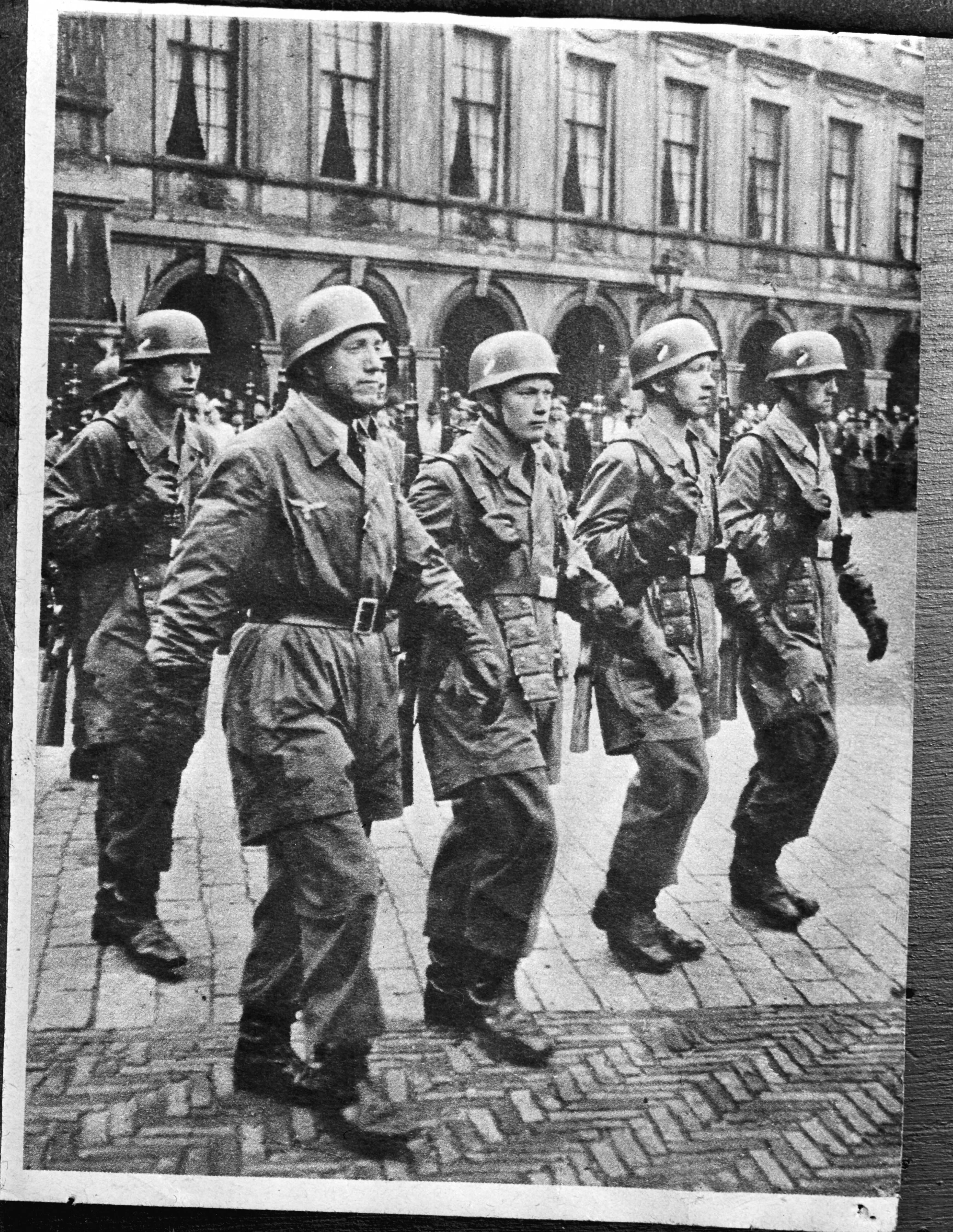 Duitse parachutisten (Fallschirmjäger) op het Binnenhof, tijdens installatie van Seyss-Inquart als Rijkscommissaris