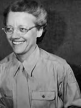 Recruten van het Vrouwenkorps van het KNIL op het WAC trainingscentrum in Fort Oglethore, Georgia. Catherine Dencher-Joseph, leidster van het Nederlandse detachement, naait een schouderinsigne op haar WAC kaki overhemd.