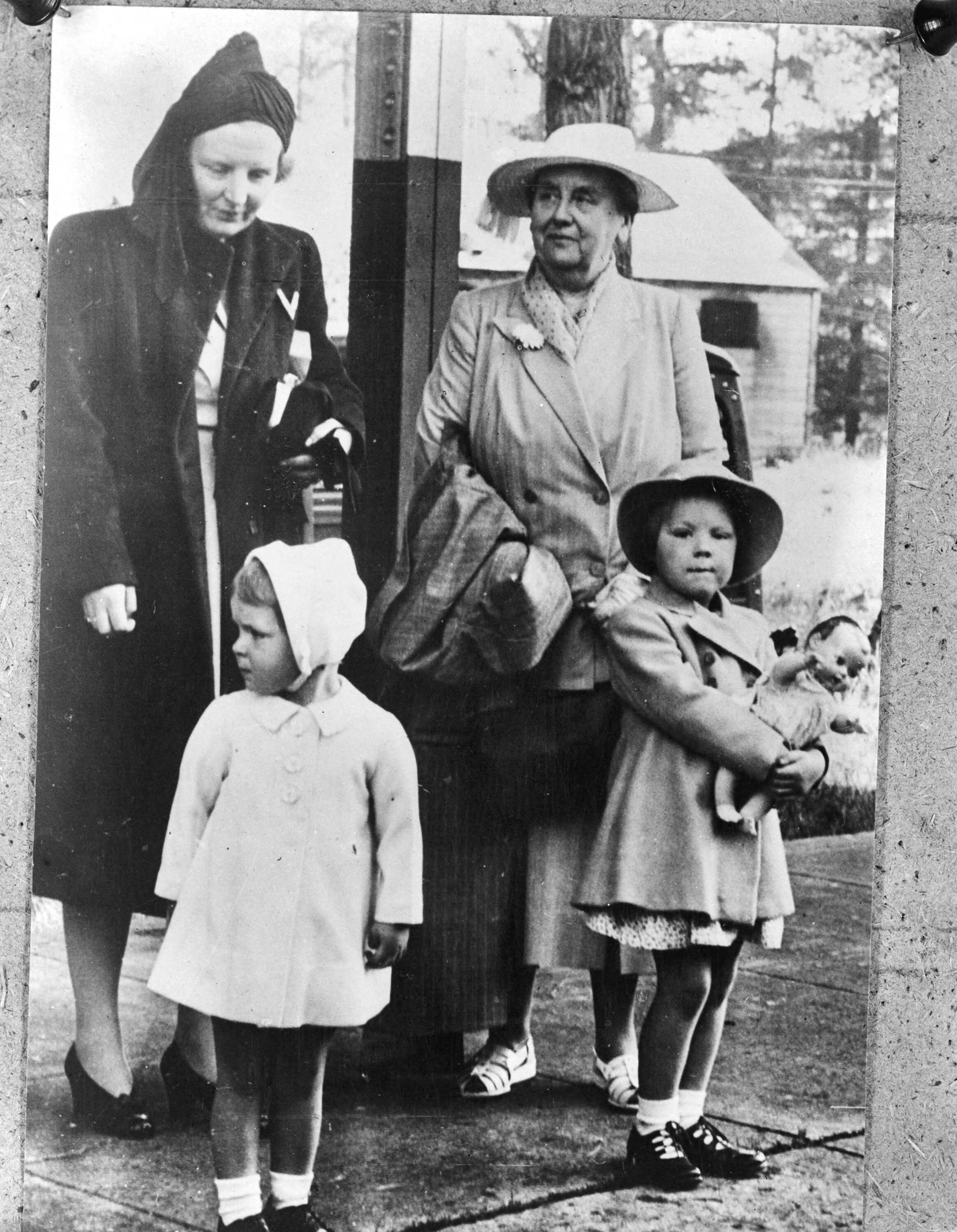 Koningin Wilhemina, prinses Juliana en de prinsessen Beatrix en Magriet tijdens een verblijf in het zomerverblijf van koningin Wil...