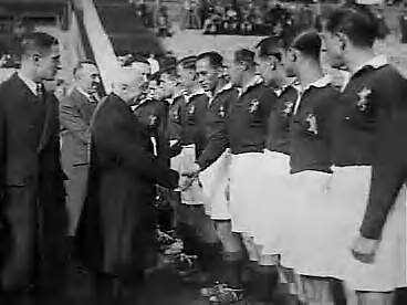 Voetbalwedstrijd Nederland-België op Wembley te Londen. Het is de tweede wedstrijd tussen beide landen op Engels grondgebied. België wint de wedstrijd met 5-4. De wedstrijd werd bijgewoond door een groot aantal Nederlandse en Belgische overheidspersonen. De Nederlandse spelers worden voorgesteld aan minister-president Gerbrandy en de Belgische minister van Defensie