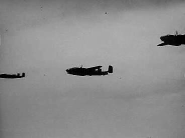 Mitchells van 320 (Dutch) Squadron RAF Bomber Command boven RAF Dunsfold, Surrey, Engeland