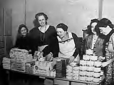 Barones Van Aerssen Beyeren van Voshol, echtgenote van de Nederlandse gezant in Australië, met leden van de Nederlandse kolonie in Melbourne tijdens het inpakken van kerstpakketten voor de Nederlandse krijgsmacht en marine