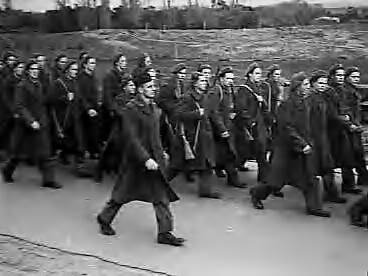 Nederlandse recruten van het KNIL uit Europa in training op Camp Darley, Victoria (Australië). Detachement op een mars ca.