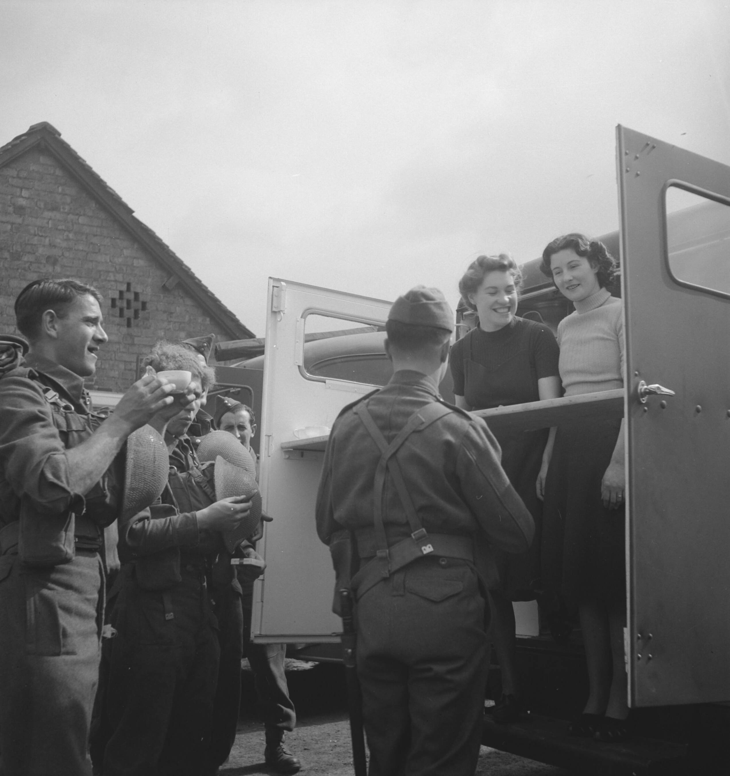 De Amerikaanse ambassadeur bij de geallieerde regeringen, Drexel Biddle, bezoekt het kamp van de Prinses Irene Brigade in gezelschap van de Nederlandse minister-president, de minister van Oorlog en andere Nederlandse ministers. Na de oefeningen wordt vanuit de kantinewagen thee geservereerd door vrouwelijke vrijwilligsters van "Young America wants to Help Committee"