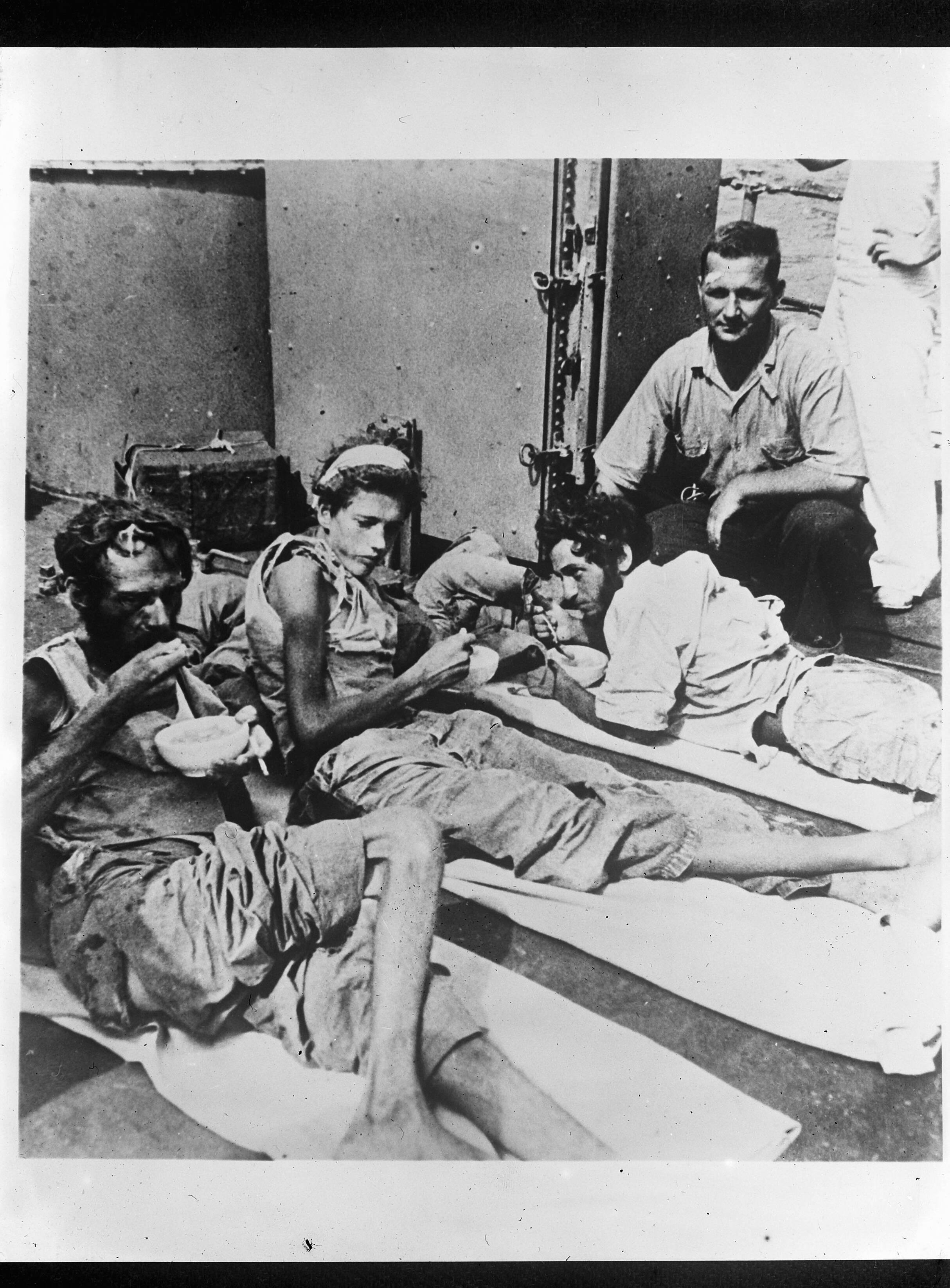 Cornelis van der Slot (37), Nick Hoogendam (17) en de Amerikaan Basil Dominic Izzi (21) verbleven 83 dagen op een vlot, gekweld door honger en dorst, nadat hun schip de "Zaandam" op 2 november 1942 getorpedeerd was door een Duitse onderzeeer in de zuiden van de Atlantische Oceaan. Aan dek van een Amerikaanse patrouillevaartuig na hun redding