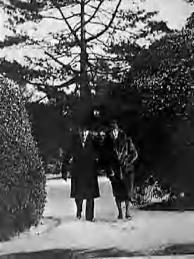 De in Engeland wonende kunstschilder A. van Anrooy en zijn echtgenote voor hun woning te 66 West Heath Road in Hampstead