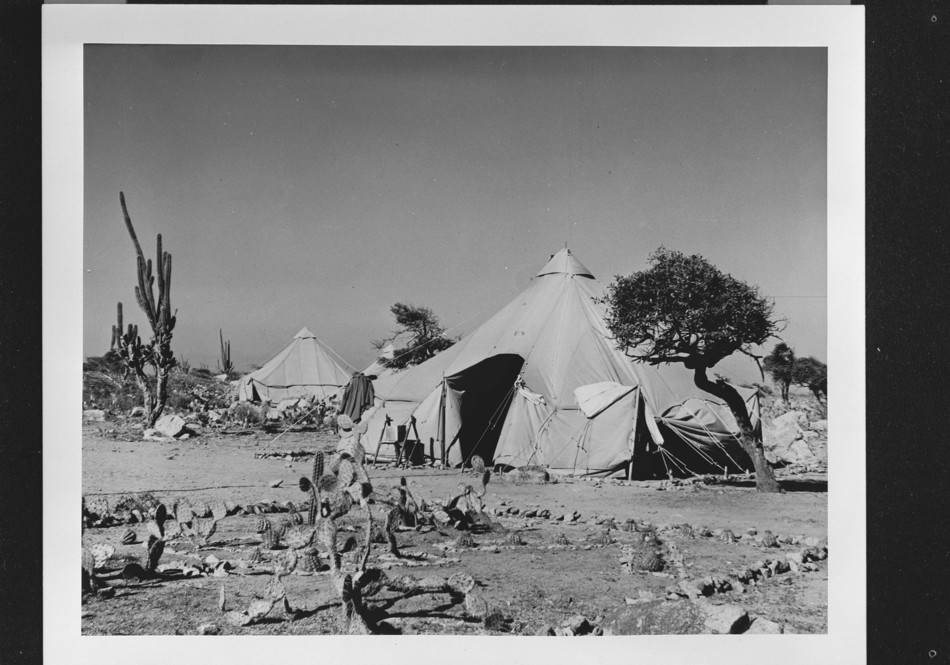 Amerikaans legerkamp bij de rafiinaderij van de Lago Oil and Transport Company te Sint Nicolaas. Op de voorgrond een cactustuin