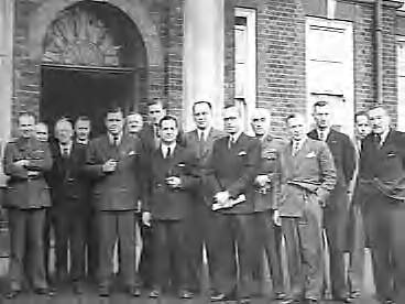 Vertegenwoordigers van geallieerde regeringen bezoeken het veterinair laboratorium van het Engelse ministerie van Landbouw en Visserij in New Haw, Weybridge, Surrey. Vlnr. majoor M. Reda (Tjechoslowakije), dr. S. Mglej (Polen), luitenant-kolonel sir Thomas Cook (MP), professor T. Dalling, Dr. R.W. Tuck, A. T. Murray (VS), B.C. Engholm, dr. J.B. Pereira (Brazilië), prof. dr. T. M. Olbrycht (Polen) L.G. Kjelsen (Noorwegen), commandant J. Cochois (Frankrijk), mons. L . Borremans (België), dr. T. Bakker (Nederland), dr. M. Gavirlovitch (Joegoslavië)