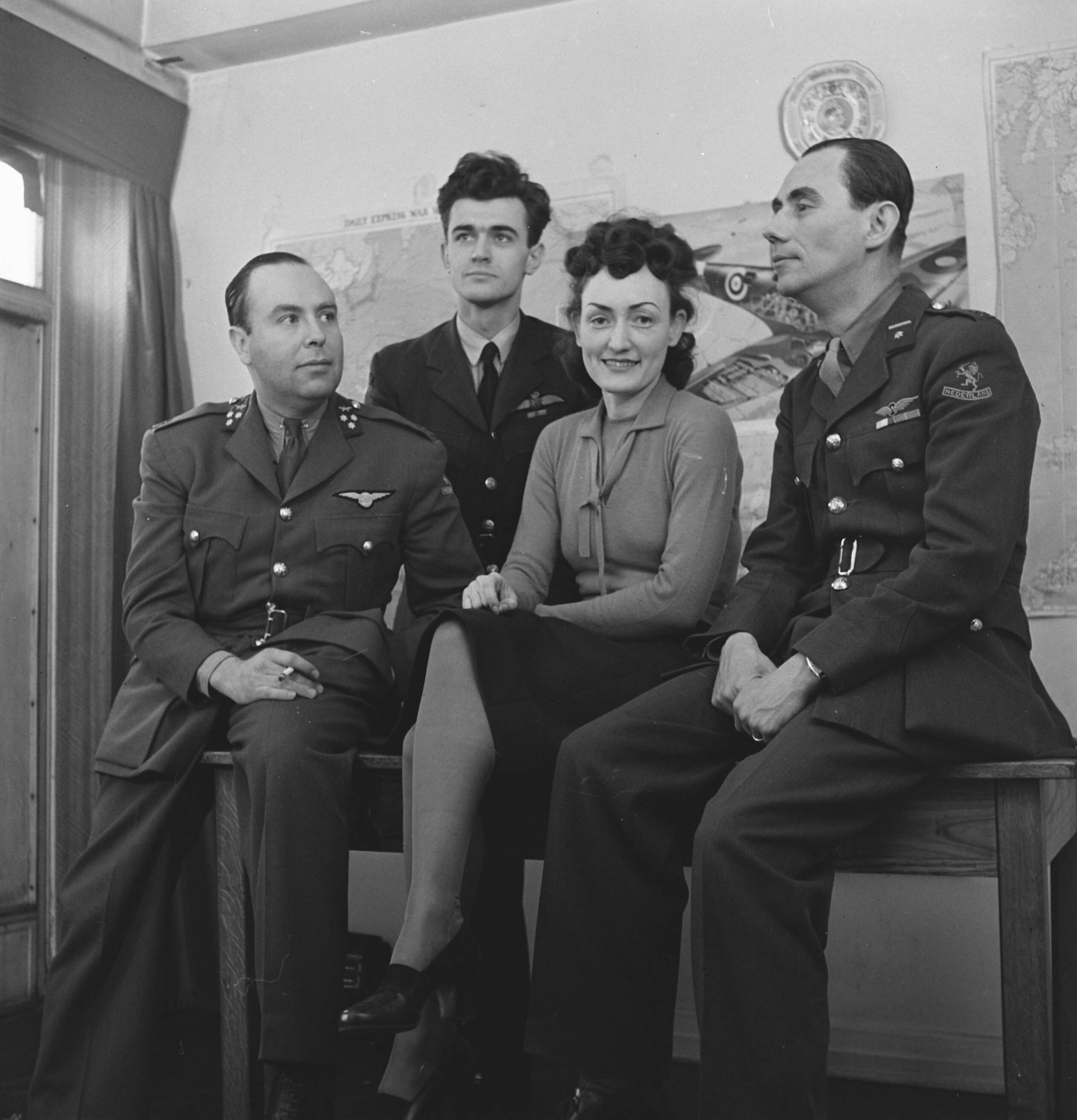 kapitein dr. ir. M. Kamphuis, vlieger luitenant B. Tammes, een secretaresse en Majoor ir.