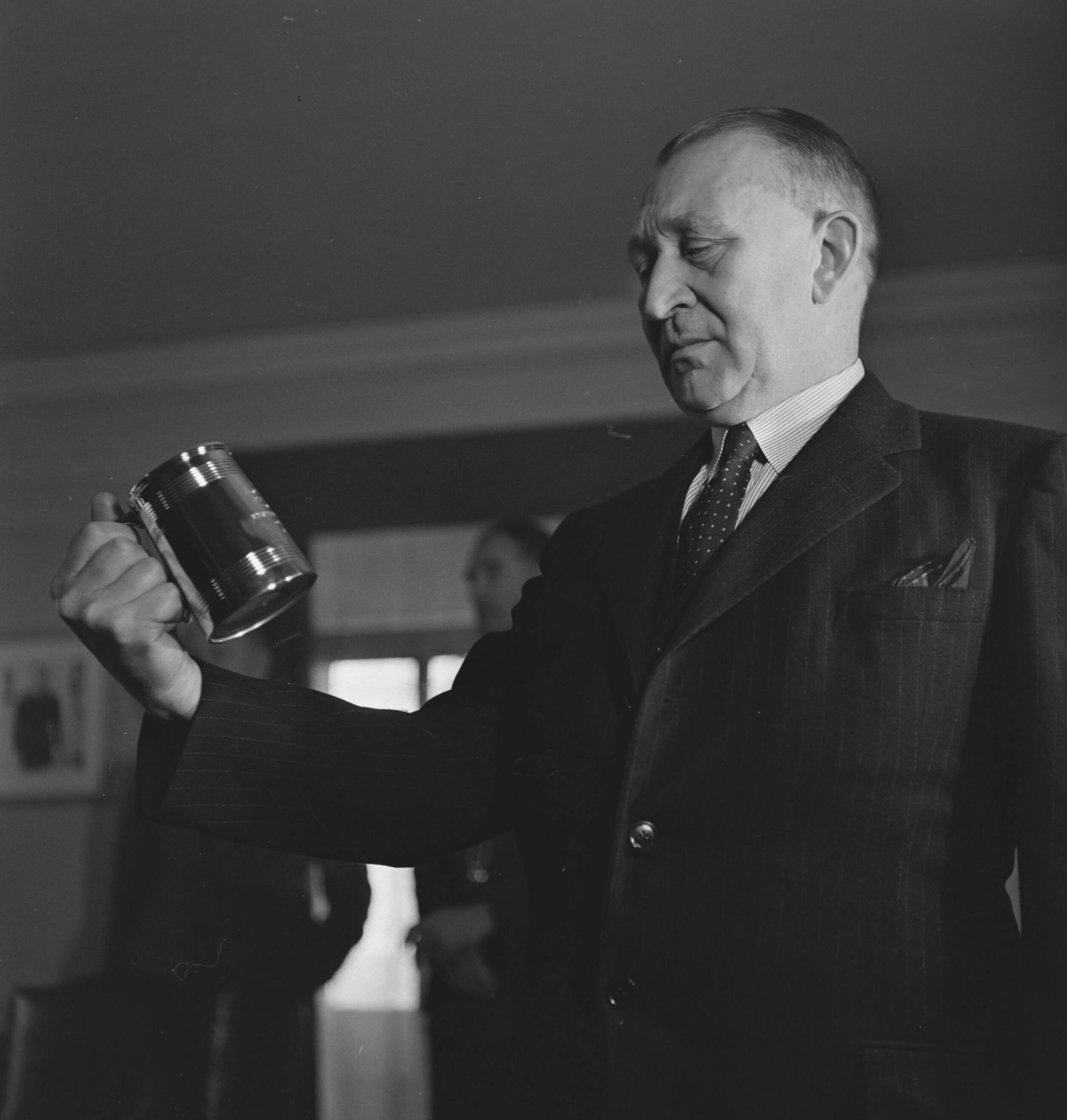 November 1943 A. Odding met de beker die de minister van Justitie hem heeft overhandigt als blijk van erkenning voor 25 jaar trouwe dienst.