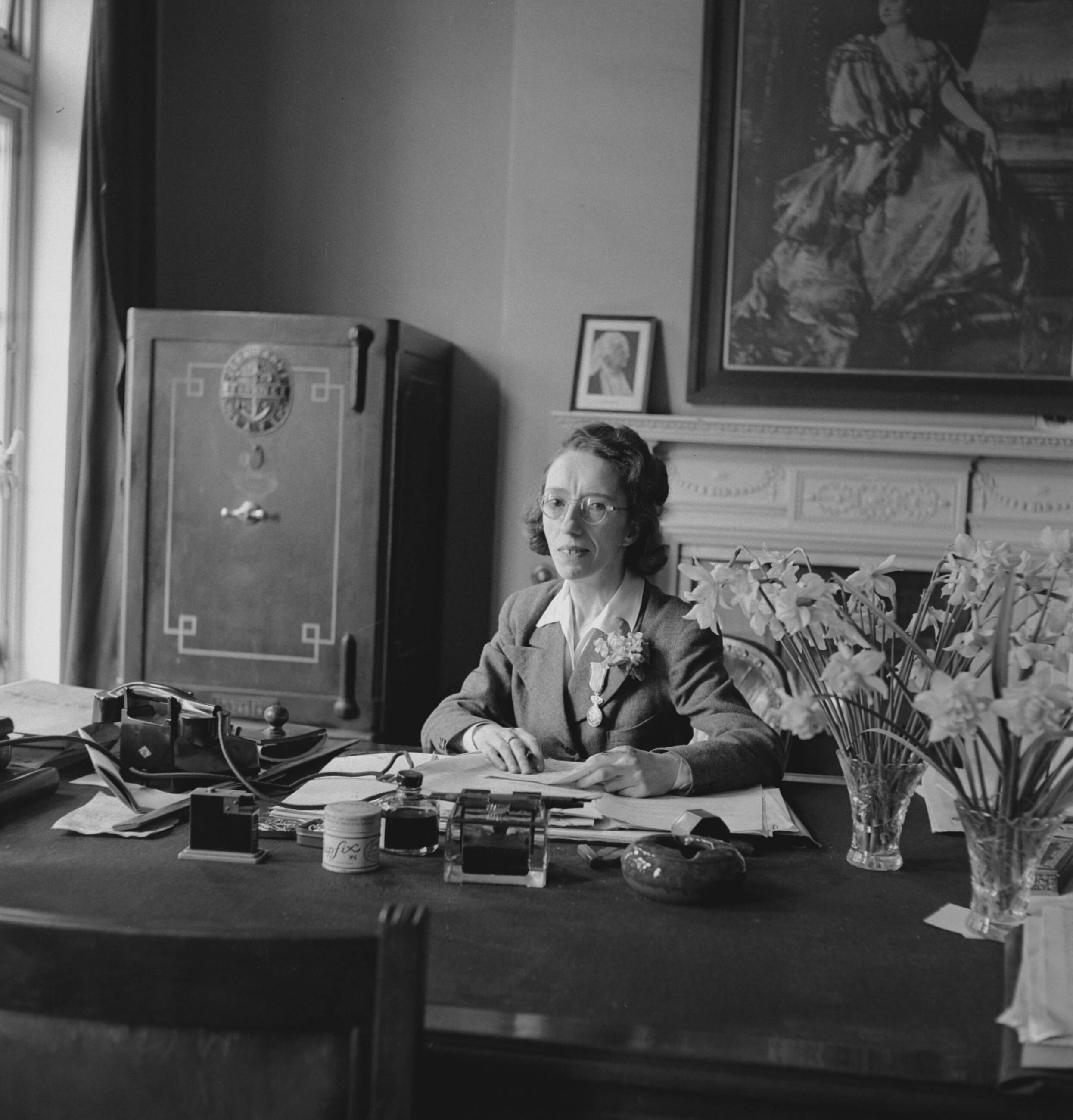 Zilveren medaille van Oranje Nassau verleend aan May McCarty die 25 jaar verbonden is aan het Nederlandse consulaat-generaal te Londen
