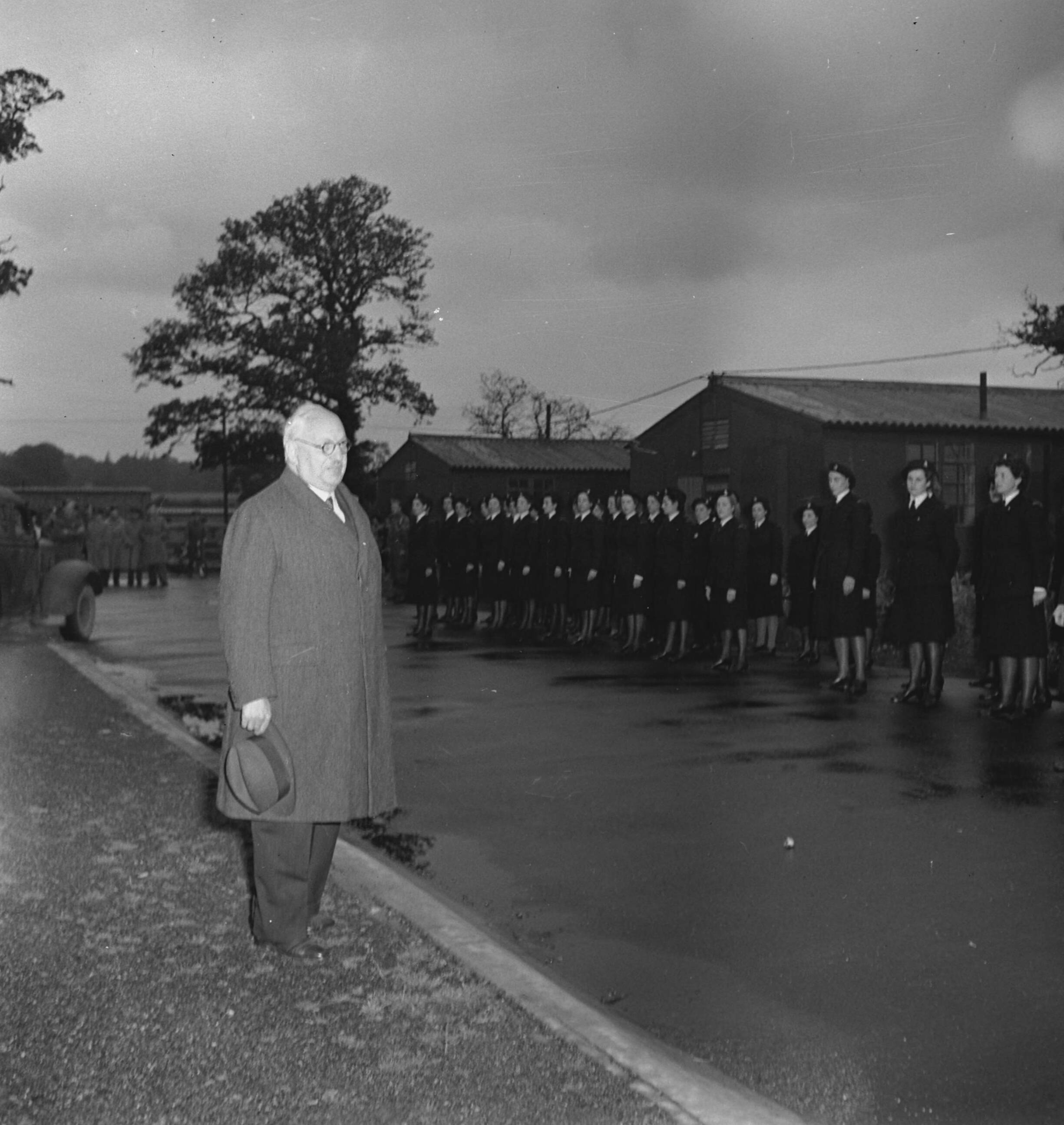 Minister van Oorlog, C.C.A. van Lidth de Jeude inspecteert het (Vrijwillig) Vrouwen Hulp Korps