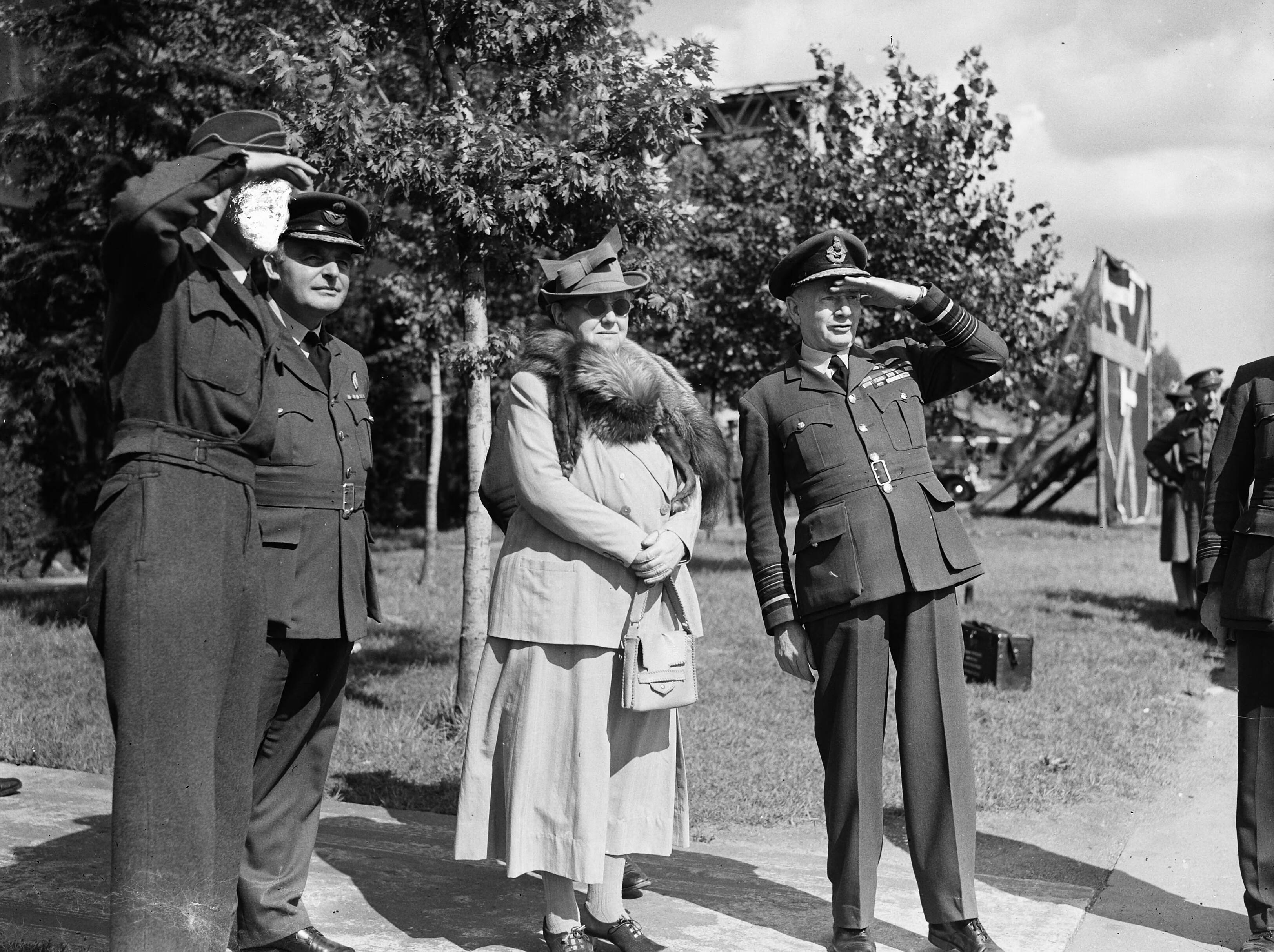 Prinses Juliana keert terug in Engeland na verblijf in Canada. Zij werd op het vliegveld opgewacht door koningin Wilhelmina. De koningin is in gezelschap van Air Chief Marshal sir Frederick Bowhill