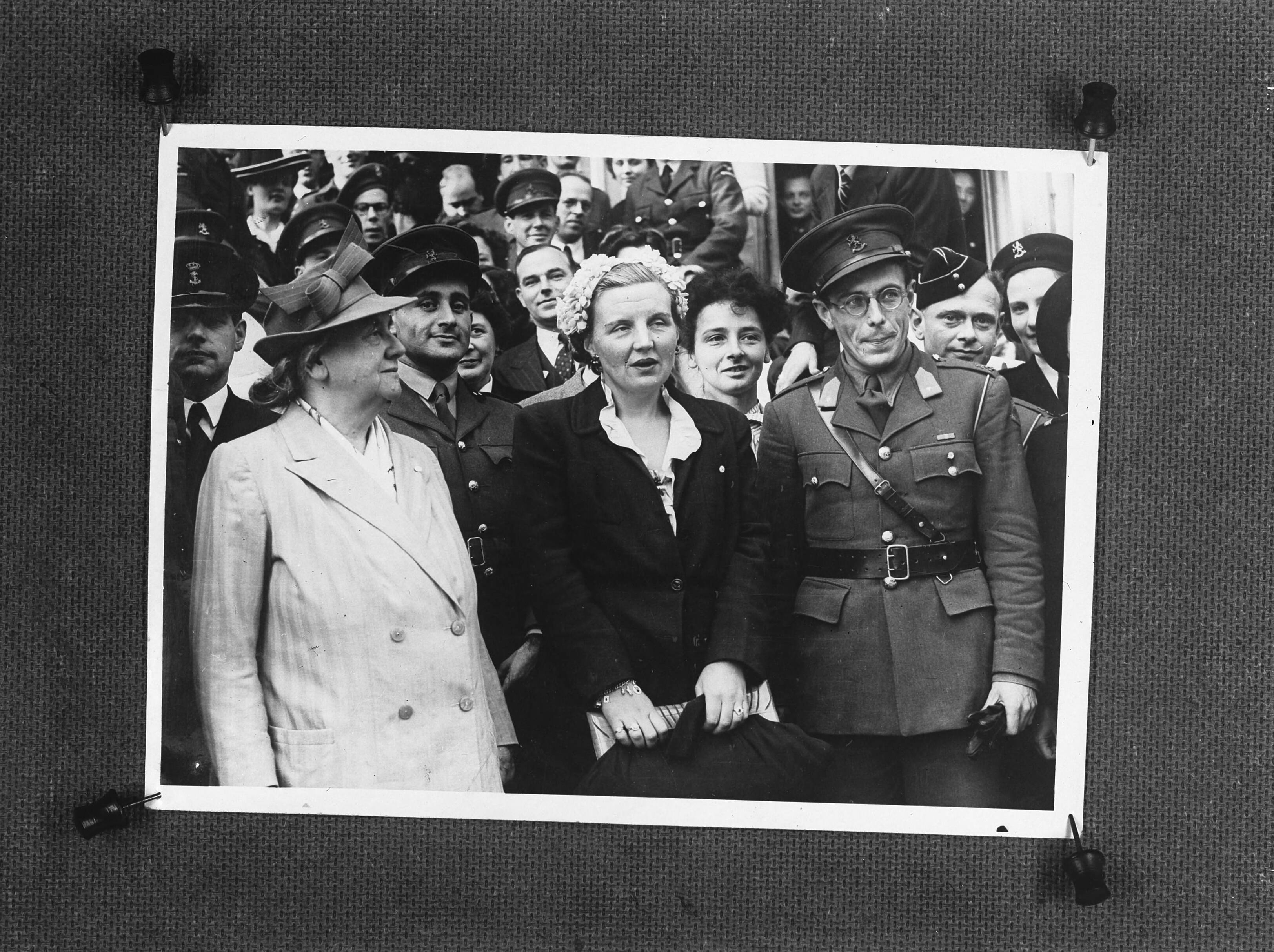 Bezoek van koningin Wilhelmina en prinses Juliana aan de Nederlandse club "Oranjehaven" in Londen
