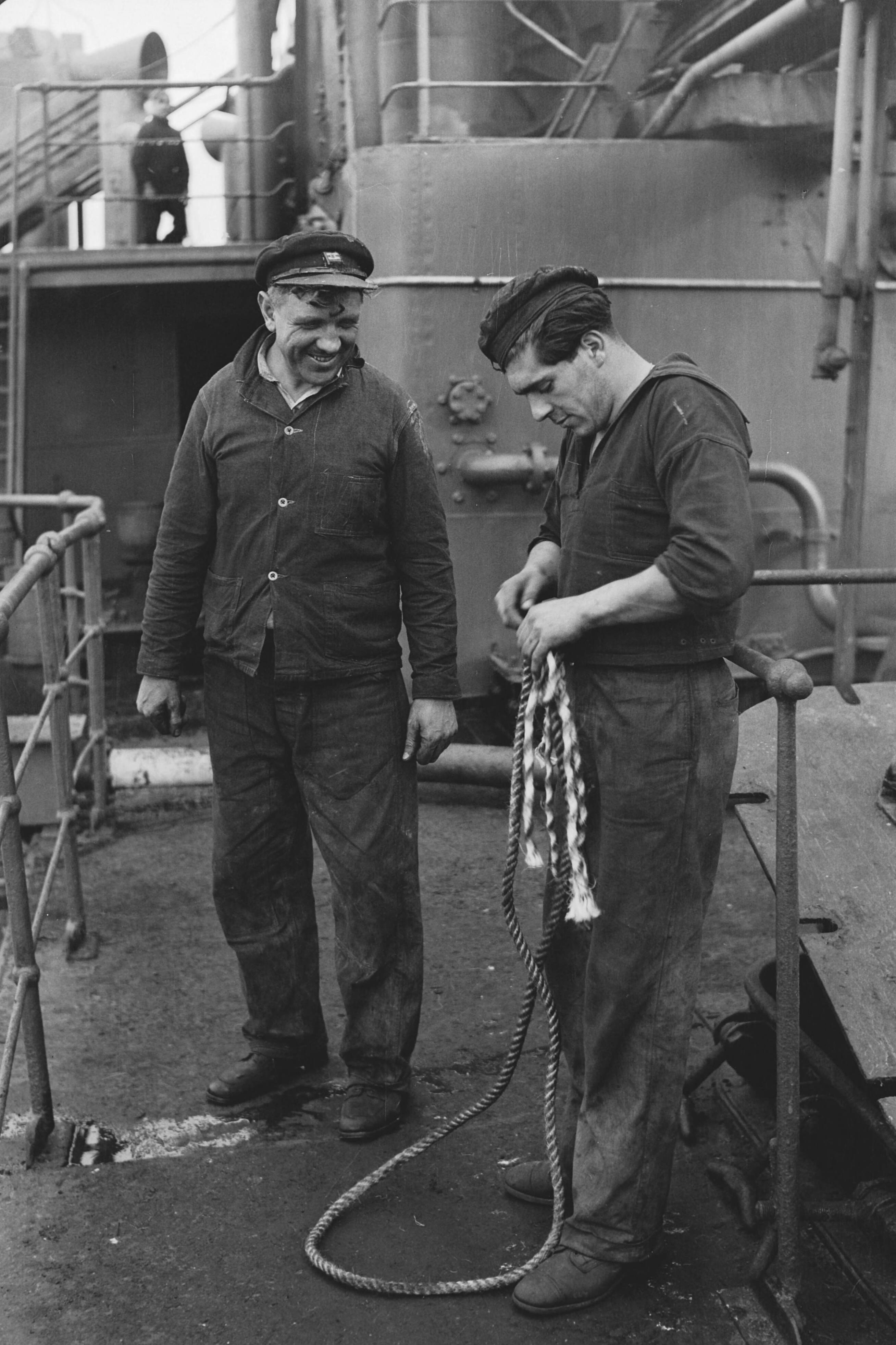 Bijschrift: "On board a Dutch tanker" Aan boord van een Nederlandse tanker