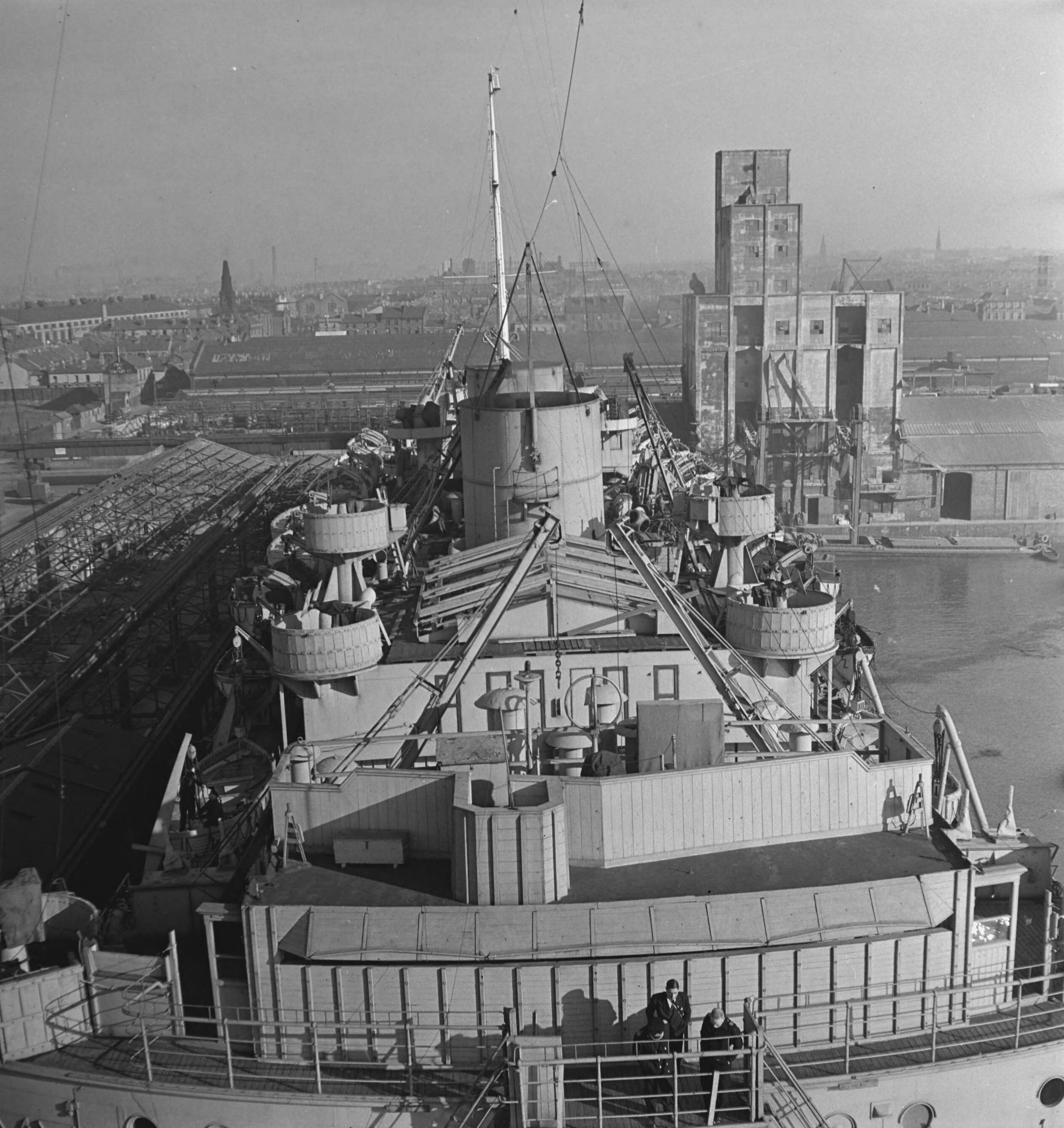 Bijschrift: "View of a Dutch liner somewhere in England"Nederlandse passagierschip ergens in Engeland