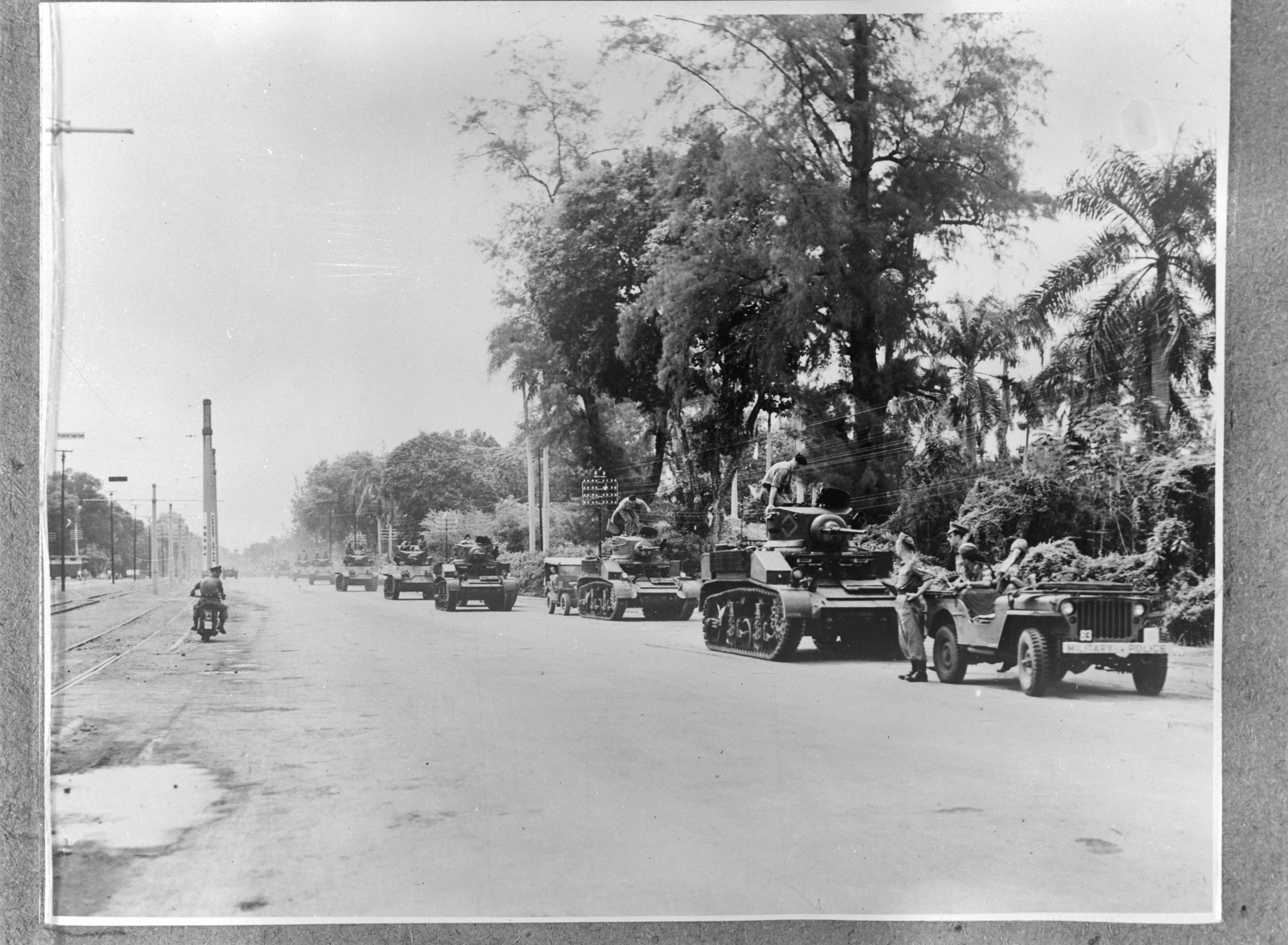 Batavia. Intocht Britse troepen met Stuart-tanks