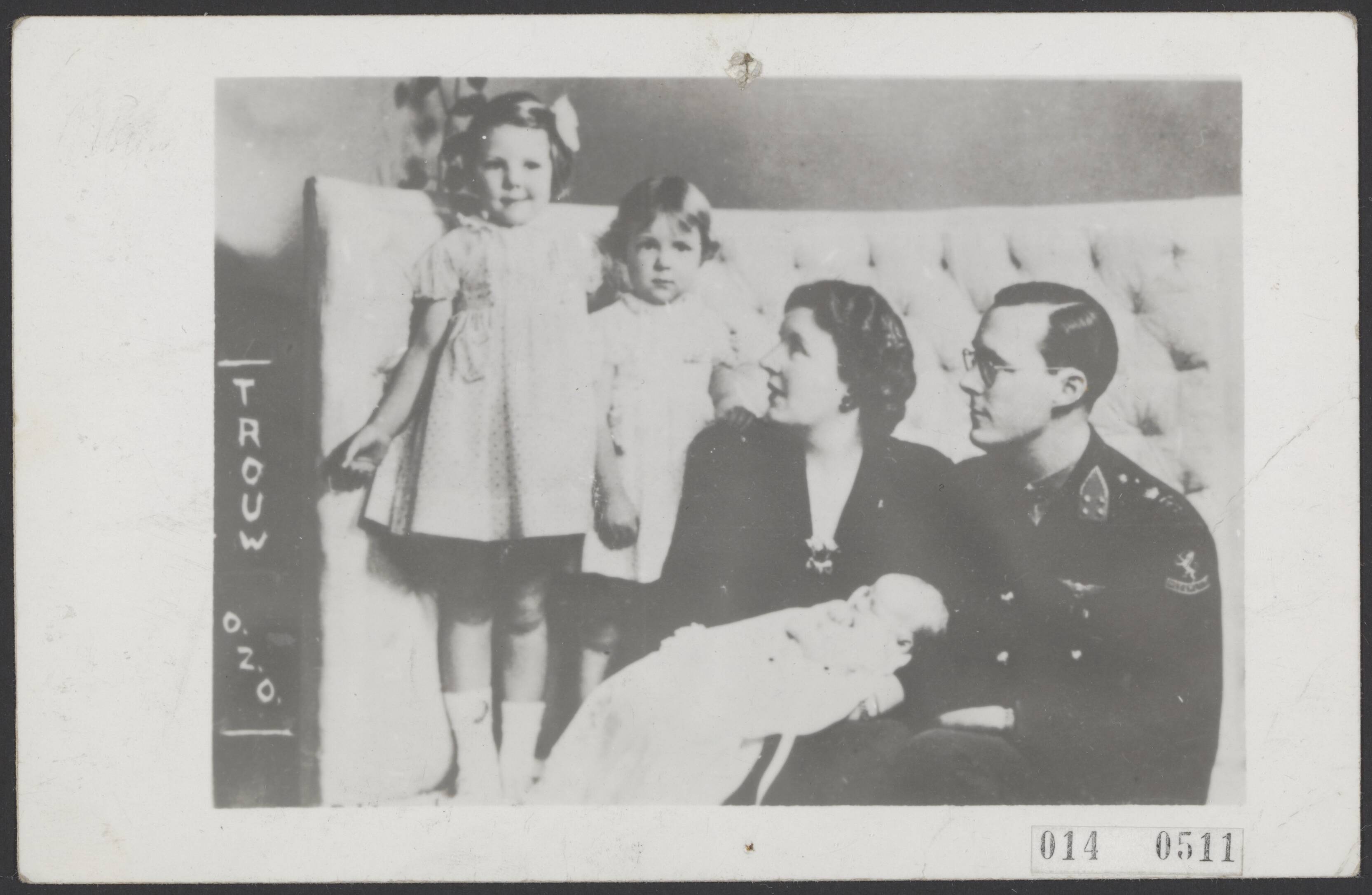 Serie foto's die zijn verschenen in het illegale blad "Trouw". De prinselijke familie: prinses Beatrix, prinses Irene, prinses Juliana, prinses Margriet en prins Bernhard
