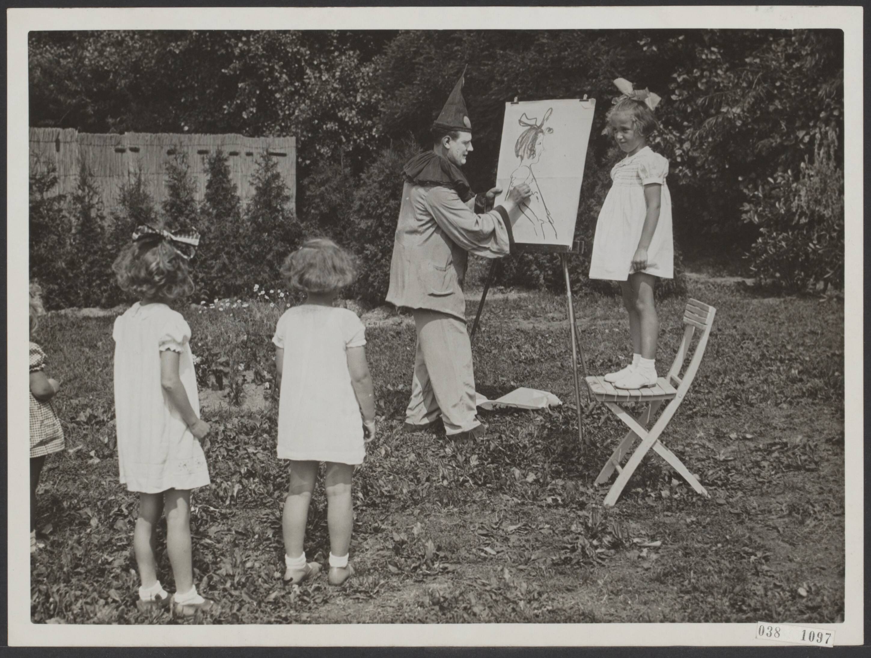 Hedenmiddag vond op het Minerva terrein te Amsterdam de eerste voorstelling plaats van het openlucht kindercabaret. De sneltekenaar op de groene bühne had de kleinen al gauw op z'n hand, toen hij zulke grappige karikatuurtekeningen van hen wist te maken