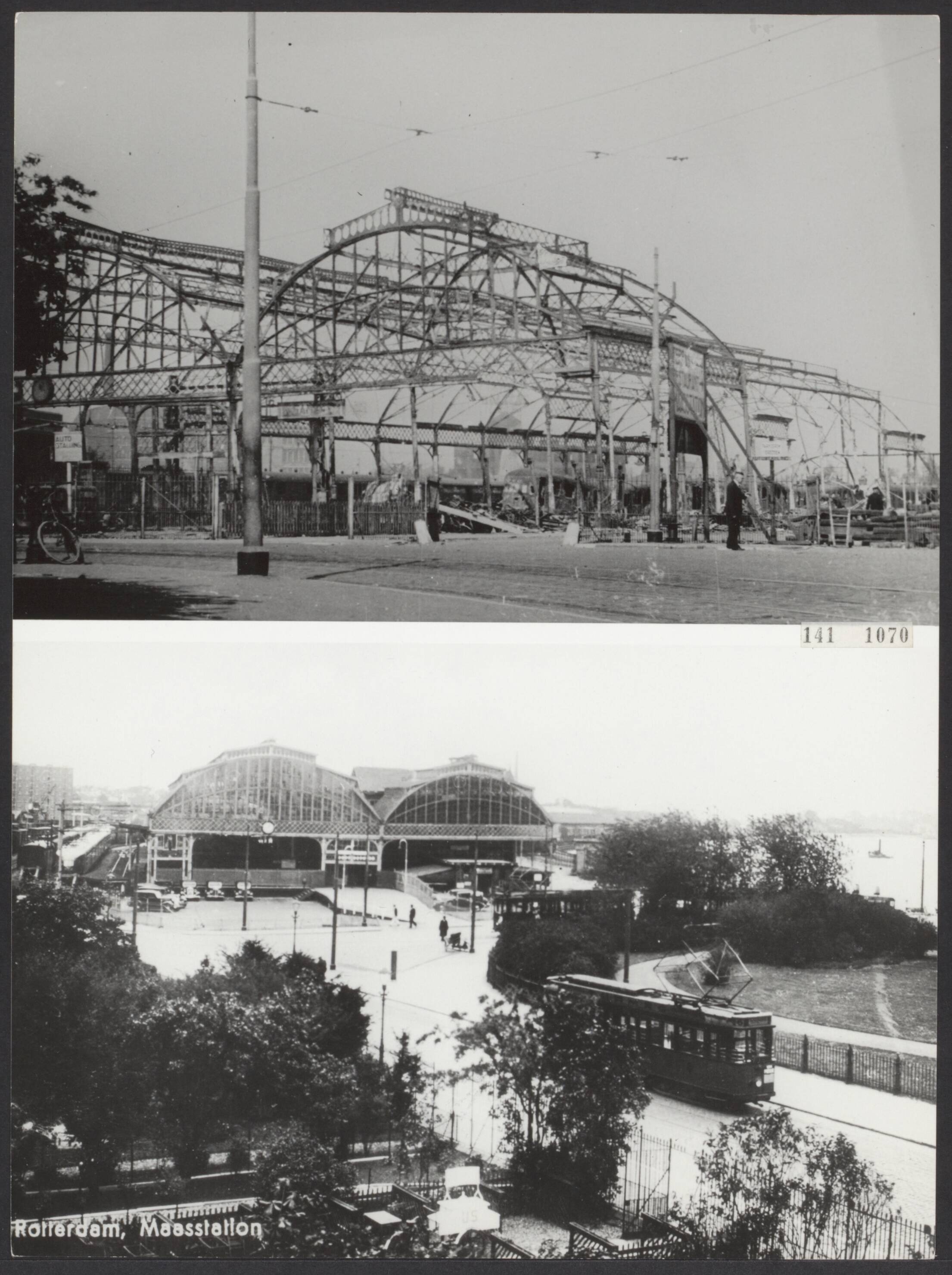 Rotterdam. Situatie voor en na het bombardement. Maasstation