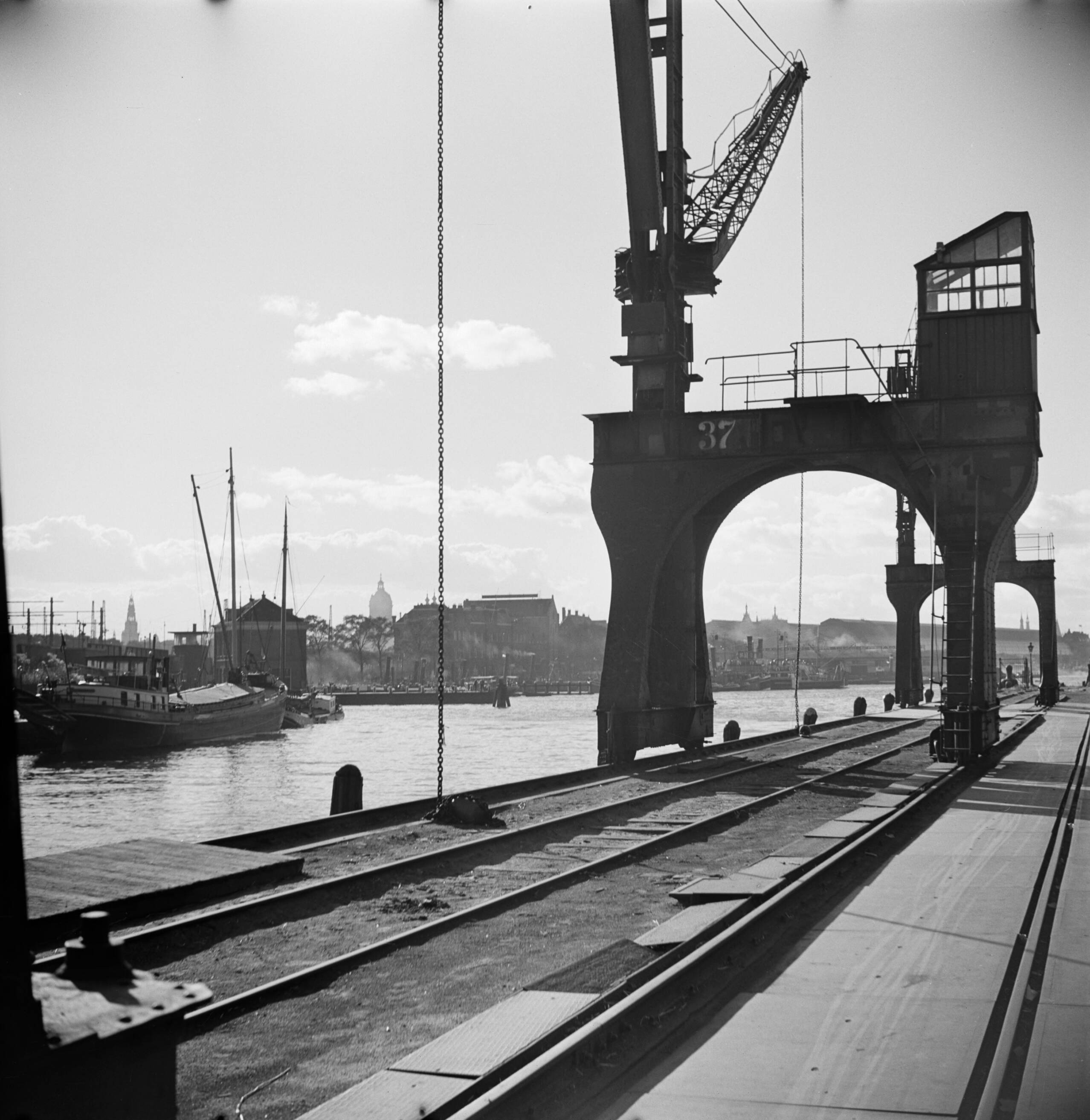 Javakade Amsterdam, links de IJhaven, op de achtergrond het Centraal Station