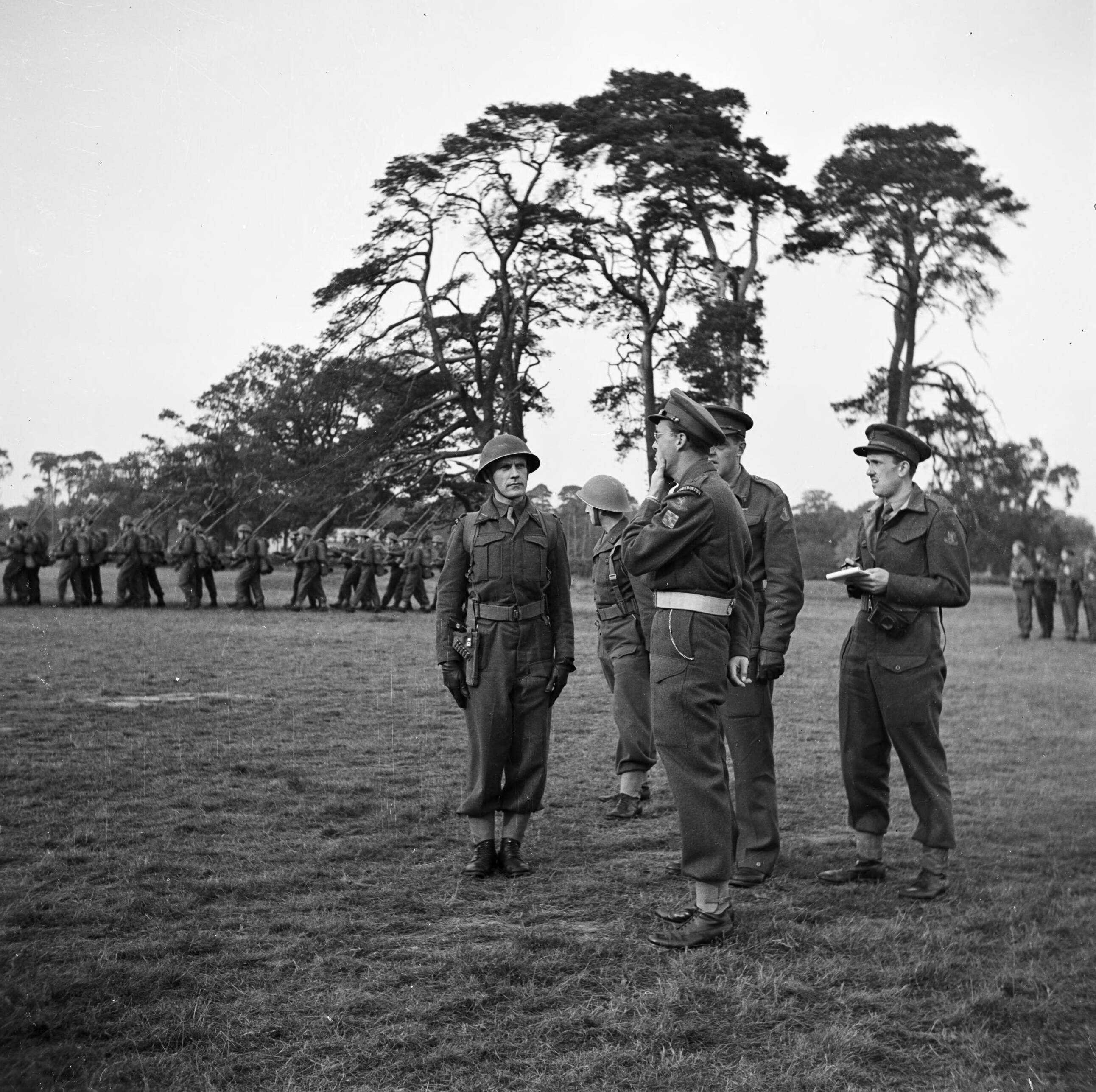 Prins Bernhard geeft zijn mening over het manoevreen van de troepen