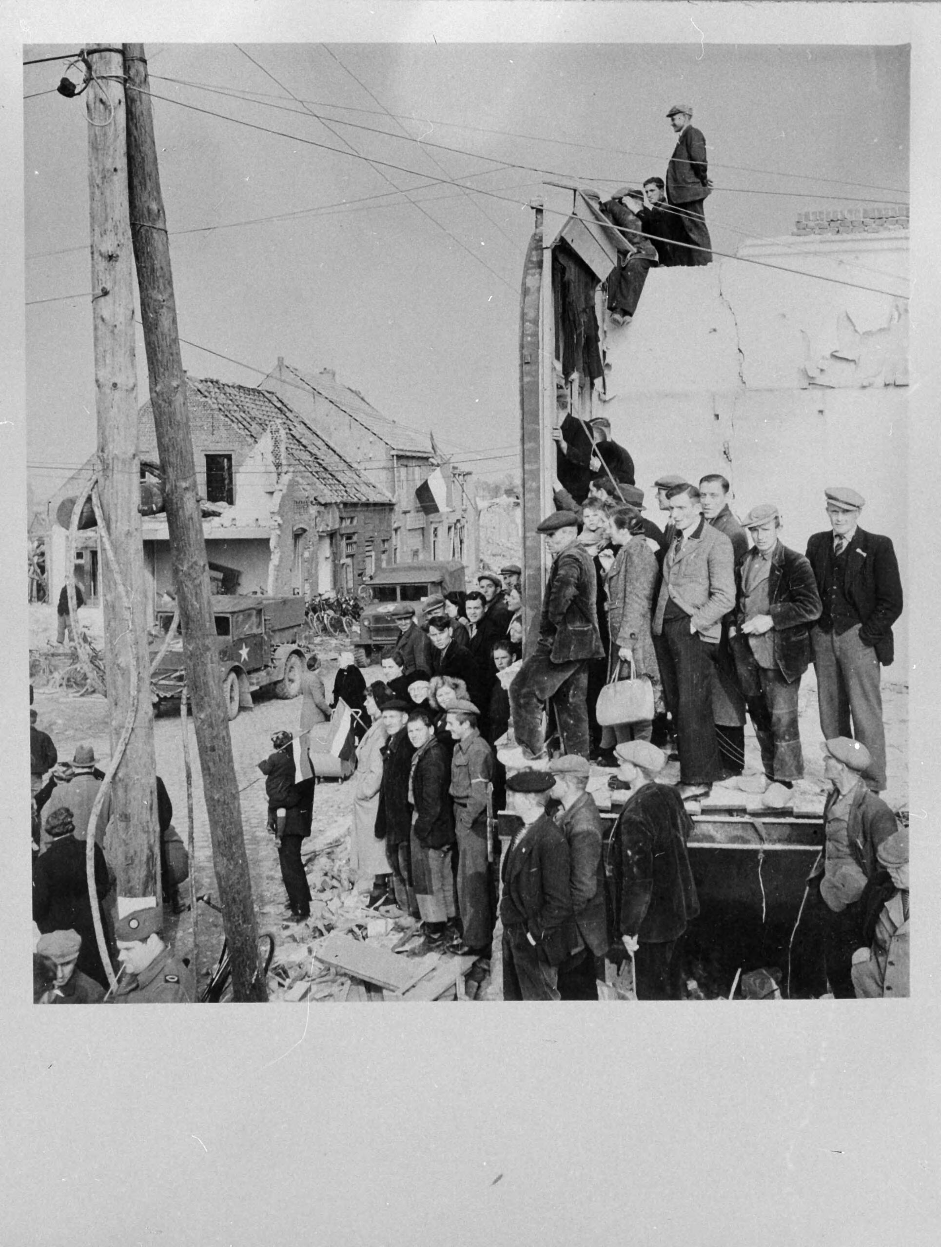Koninklijk huis. Bevrijding. Koningin Wilhelmina zet weer voor het eerst voet op Nederlandse bodem in Eede Zeeuws-Vlaanderen. Publiek in afwachting