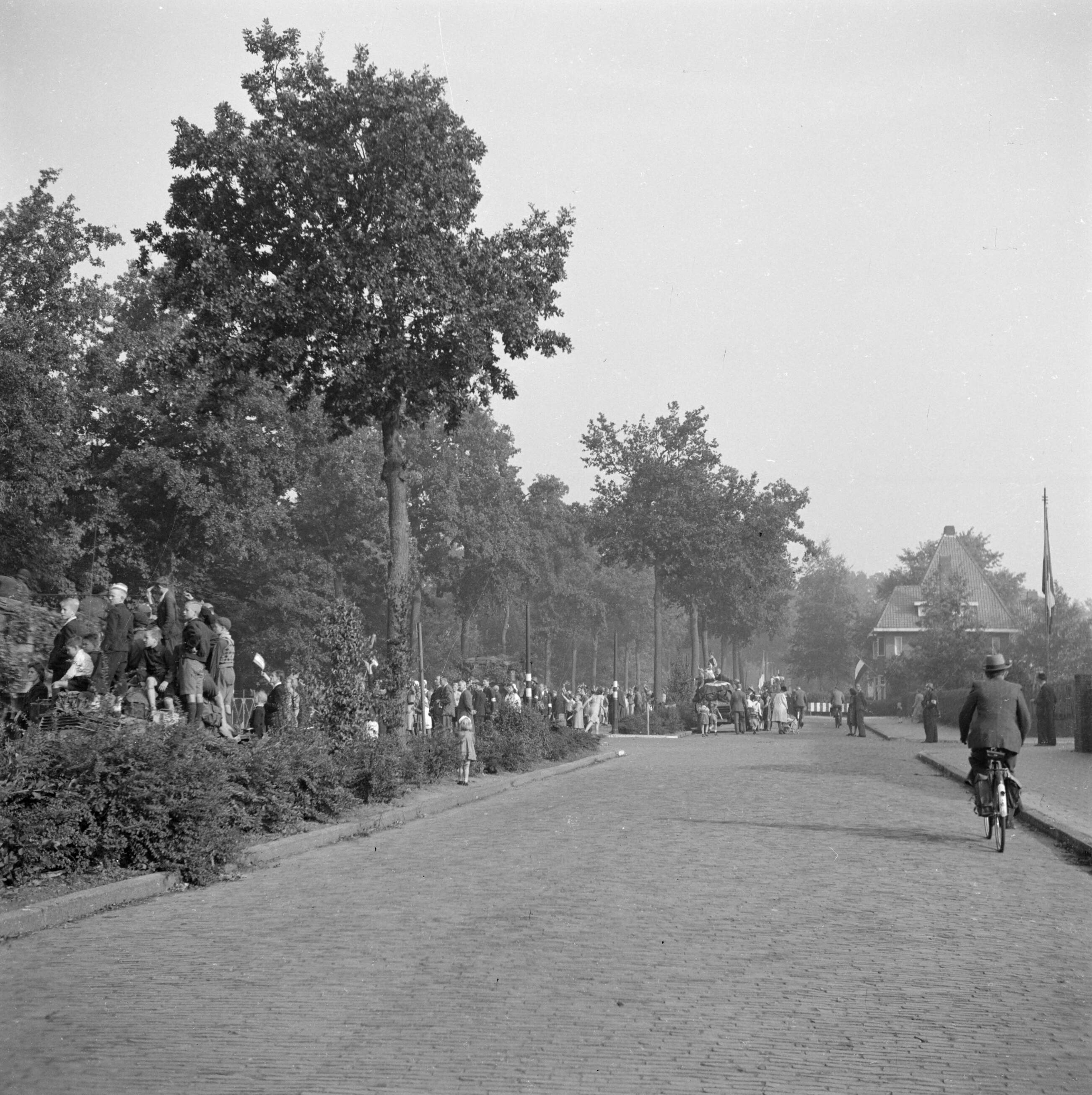 Langs de kant van de weg bij de intocht van de Prinses Irene Brigade in Aalst