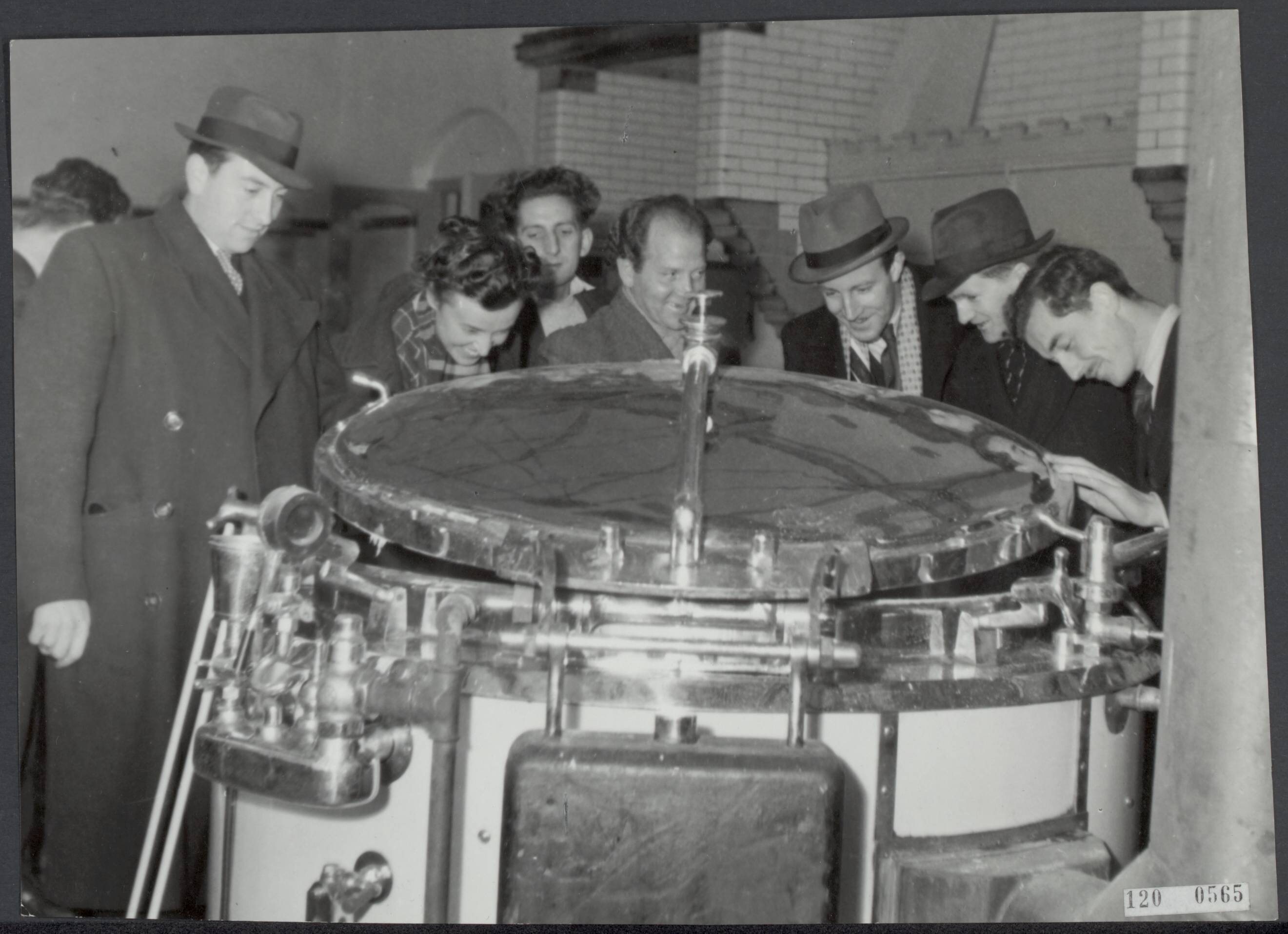 Stichting 1940-1945 Herstellingsoord in Paleis het Loo. Journalisten inspecteren de moderne keukenapparatuur