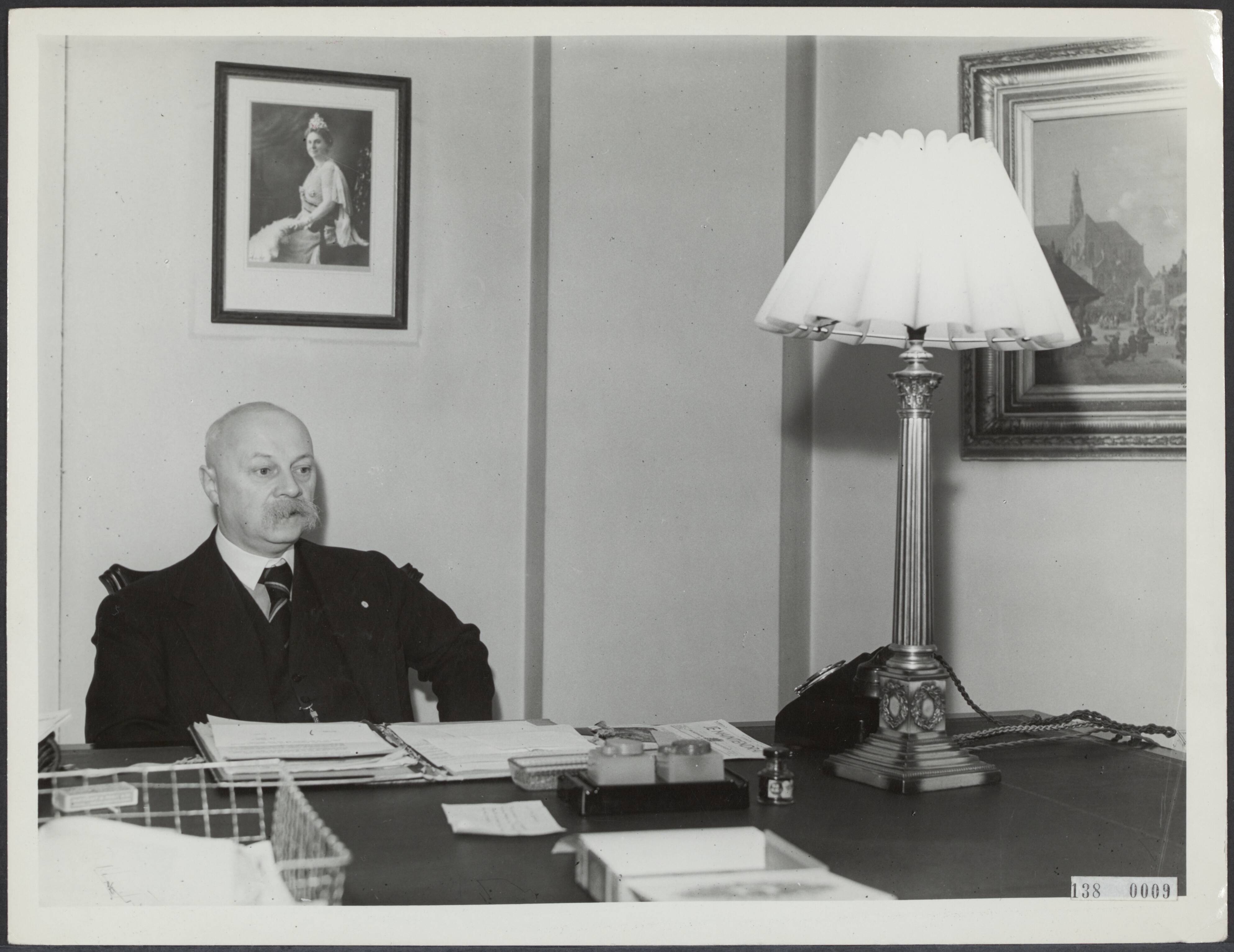 Kabinet Gerbrandy 1940-1945. P.S. Gerbrandy, minister van Justitie 1940-1941, minister van Algemene Oorlogvoering 1941-1945. Voorzitter van de Ministerraad 1940-1945