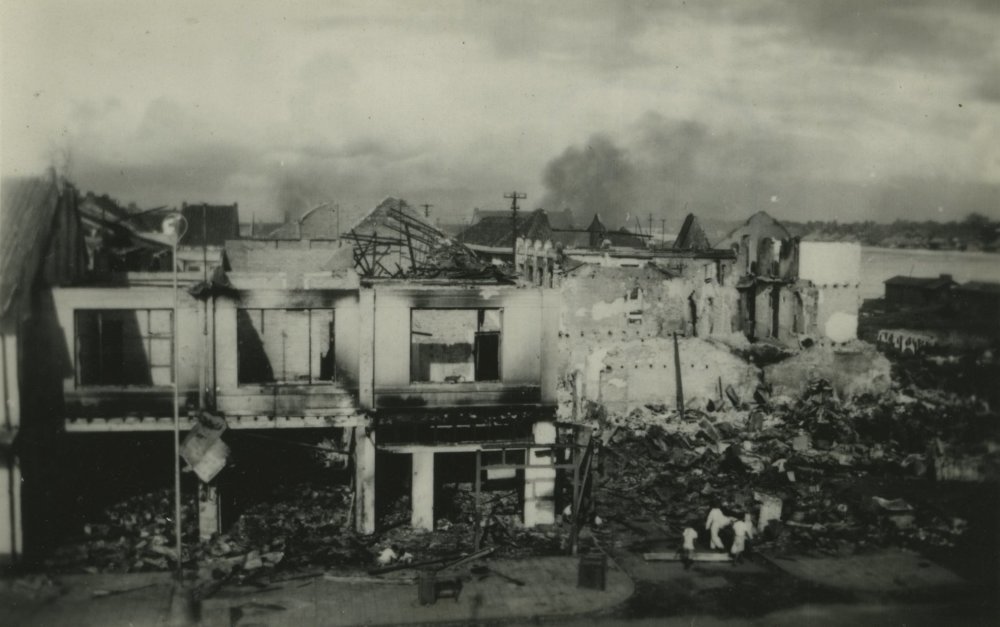 Genisten plaatsen explosieven in uitgeboorde gaten in een gebouw in Nederlands-Indië.