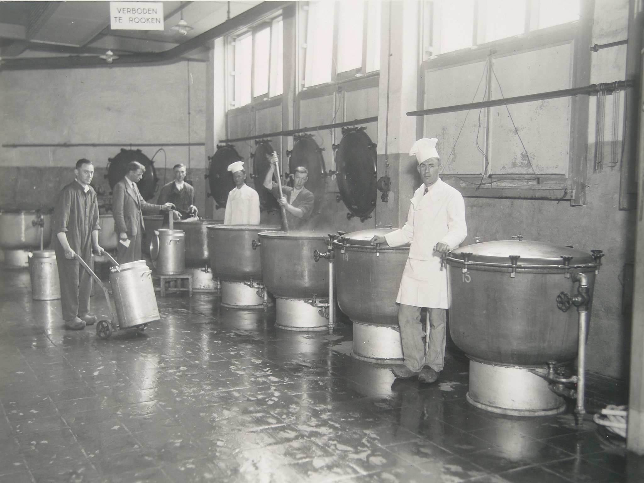 Centrale keuken in de Chocolade- en biscuitfabriek Victoria aan de Korte Parallelweg. Tijdens de bezetting werd hier voedsel gedistribueerd in verband met de voedselschaarste