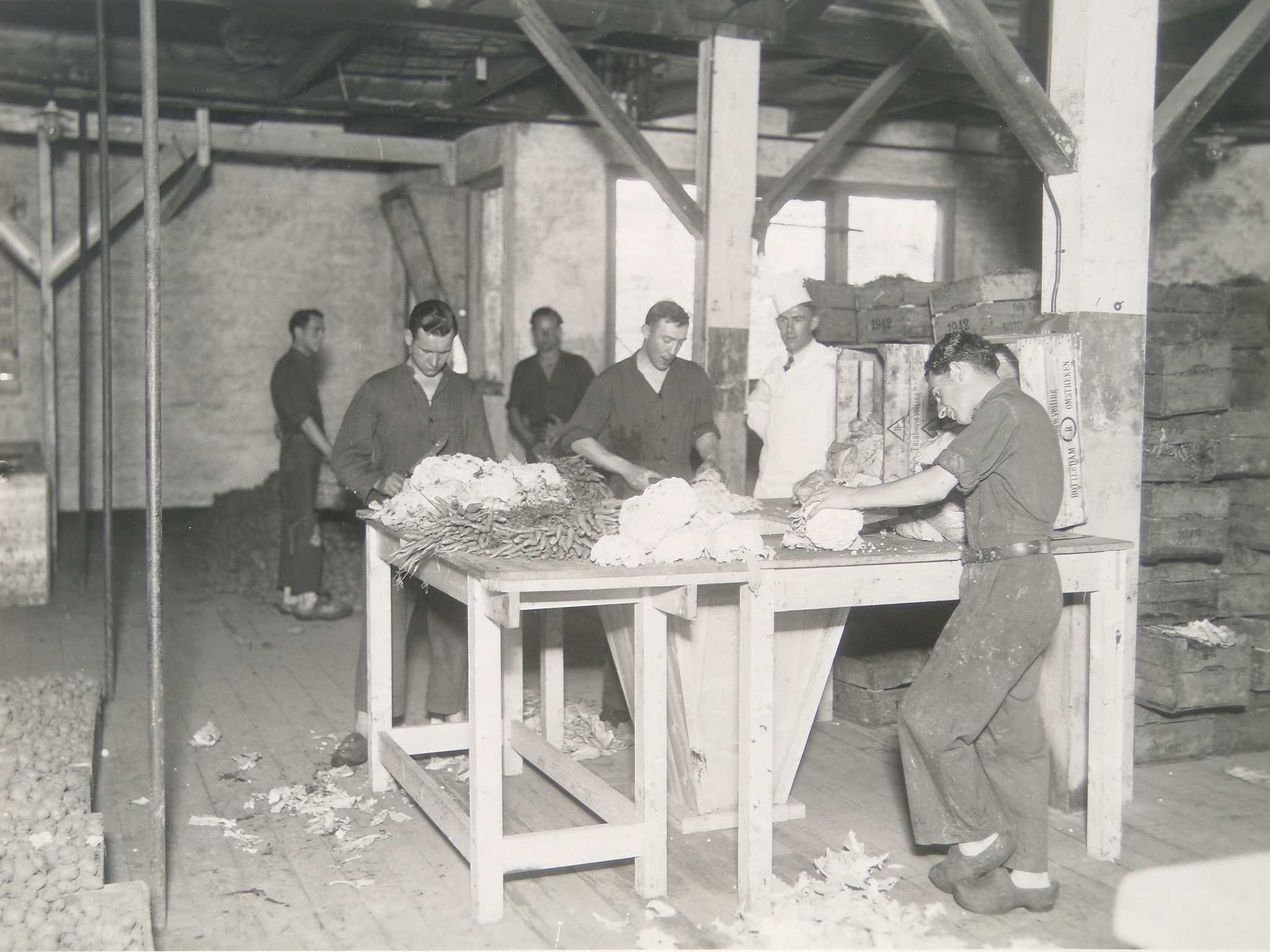 Centrale keuken in de Chocolade- en biscuitfabriek Victoria aan de Korte Parallelweg. Tijdens de bezetting werd hier voedsel gedistribueerd in verband met de voedselschaarste